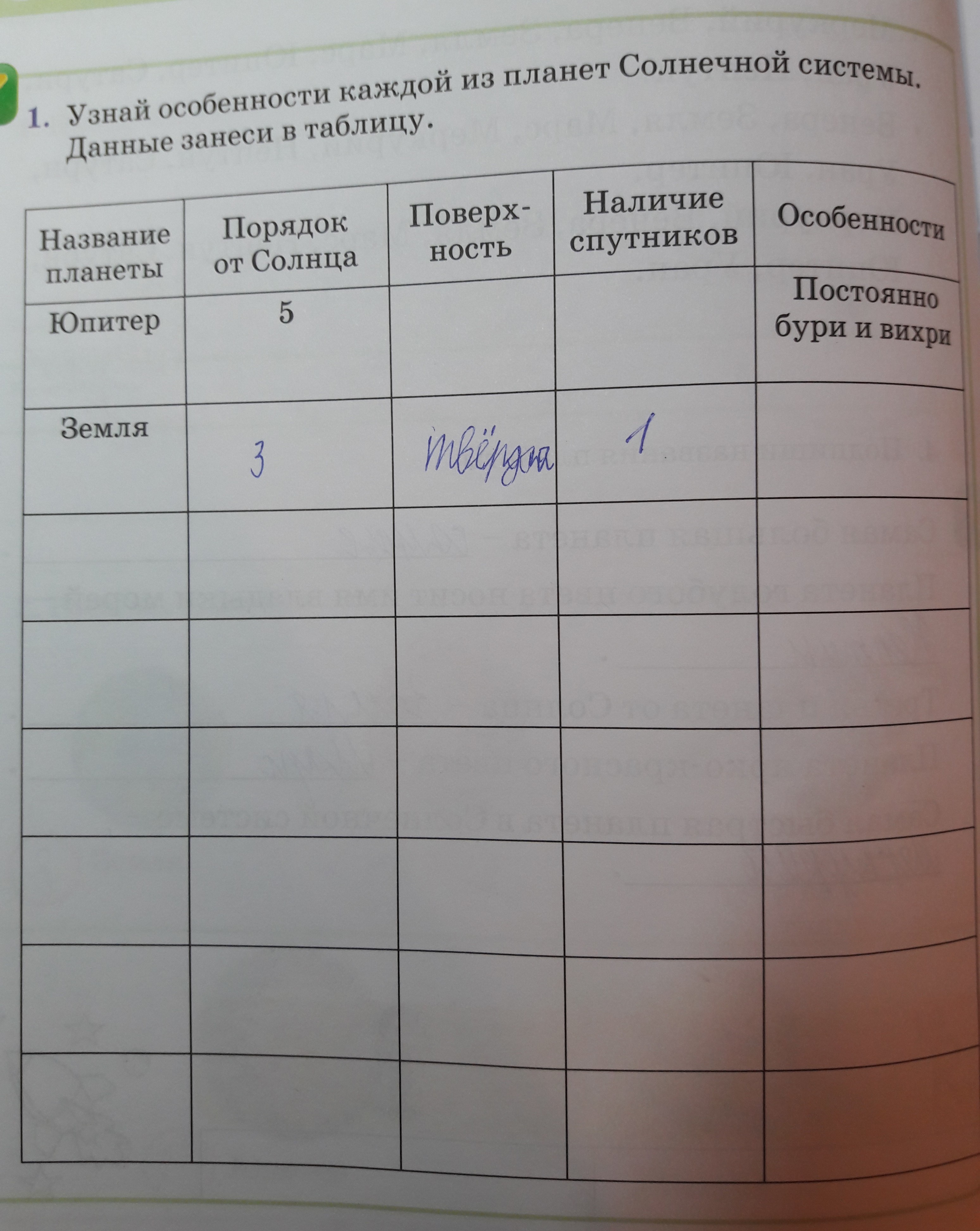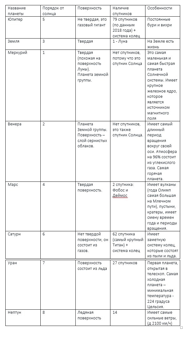 Таблица по особенностям планет Солнечной системы прикреплена ниже. Смотри в приложении!
