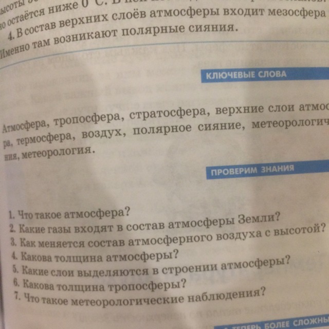 5. Термосфера, Мезосфера, Стратосфера, Озоновый слой, Тропосфера.