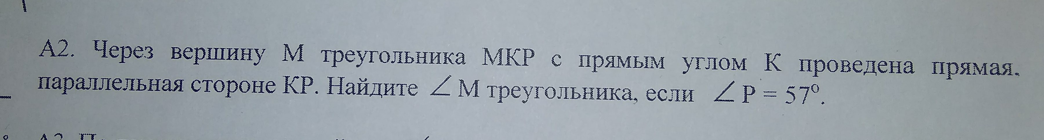 Угол М = 180°-угол К - угол Р = 180-90-57=33°
