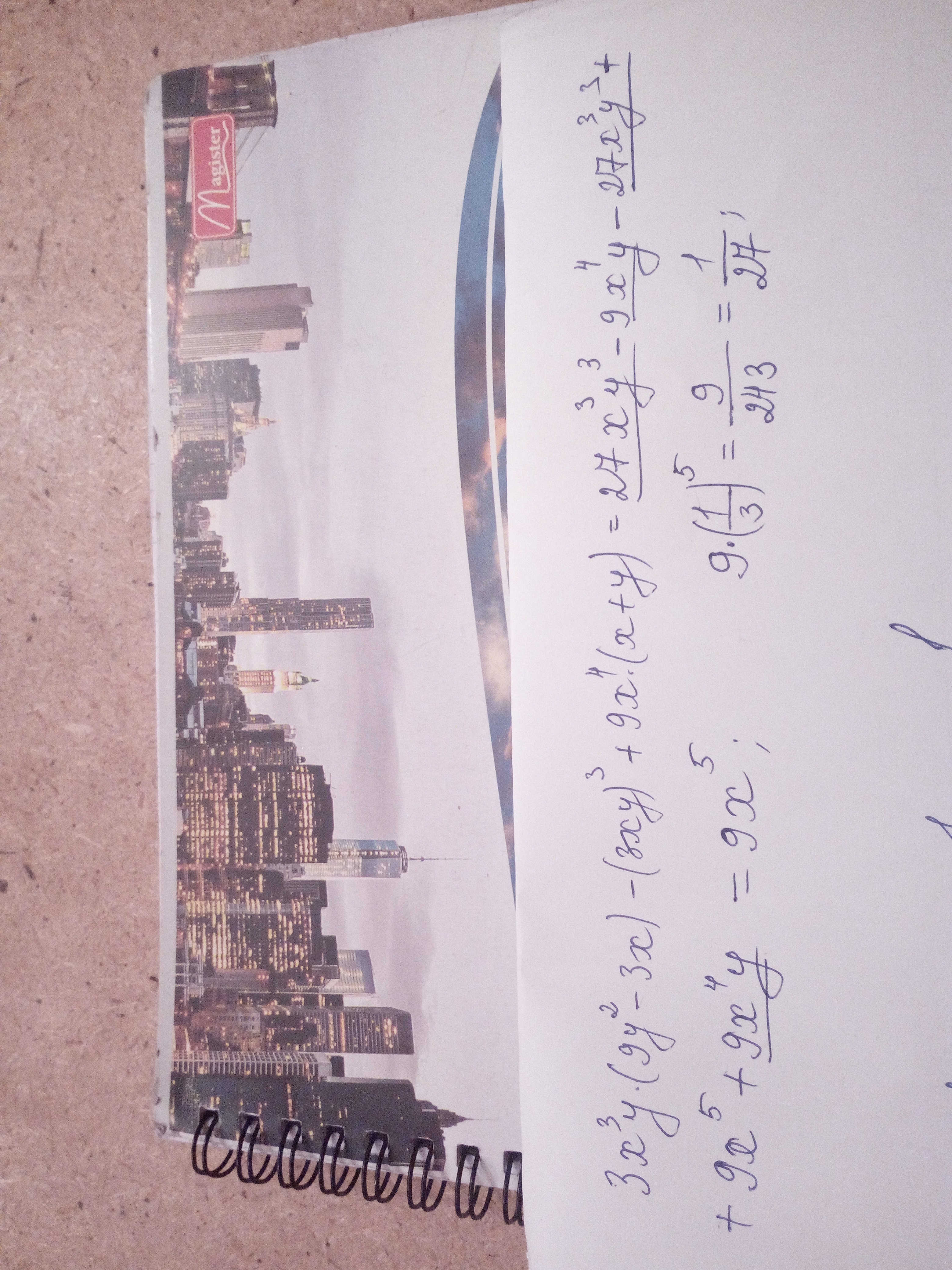 Упростите выражение 3x^3y (9y^2-3x) - (3xy)^3 + 9x^4 (x+y) и найдите его значение при x=1/3 СРОЧНО!!!