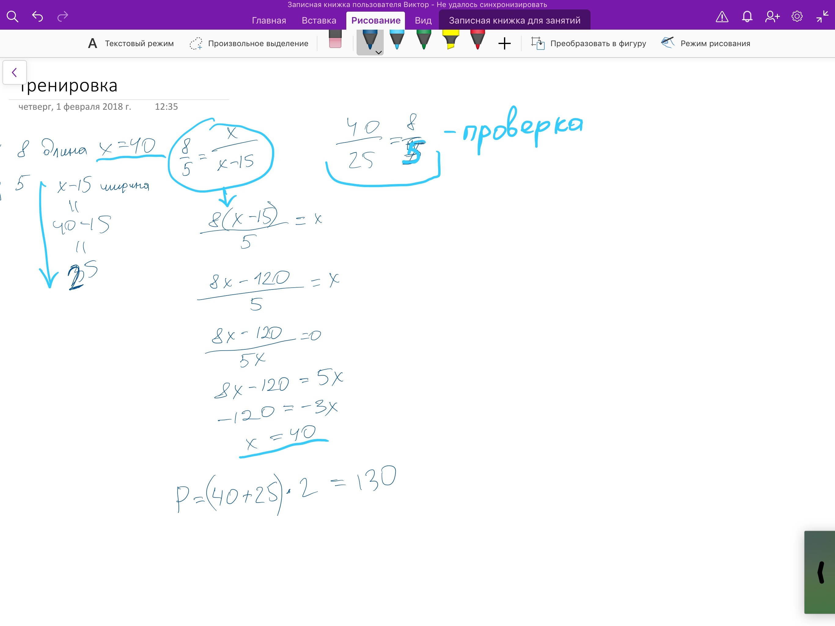 Отношение длины спортивной площадке к ее ширине равно 8 : 5. Найдите ее периметр если ширина площадки меньше ее длины на 15 метров