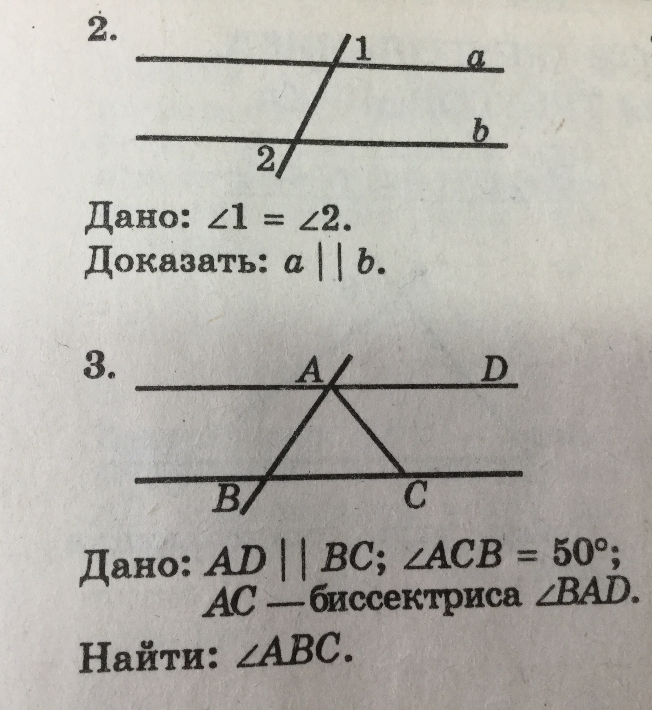 2. а||б т.к угол 1= углу 2, значит они накрест лежащие углы при параллельных прямых