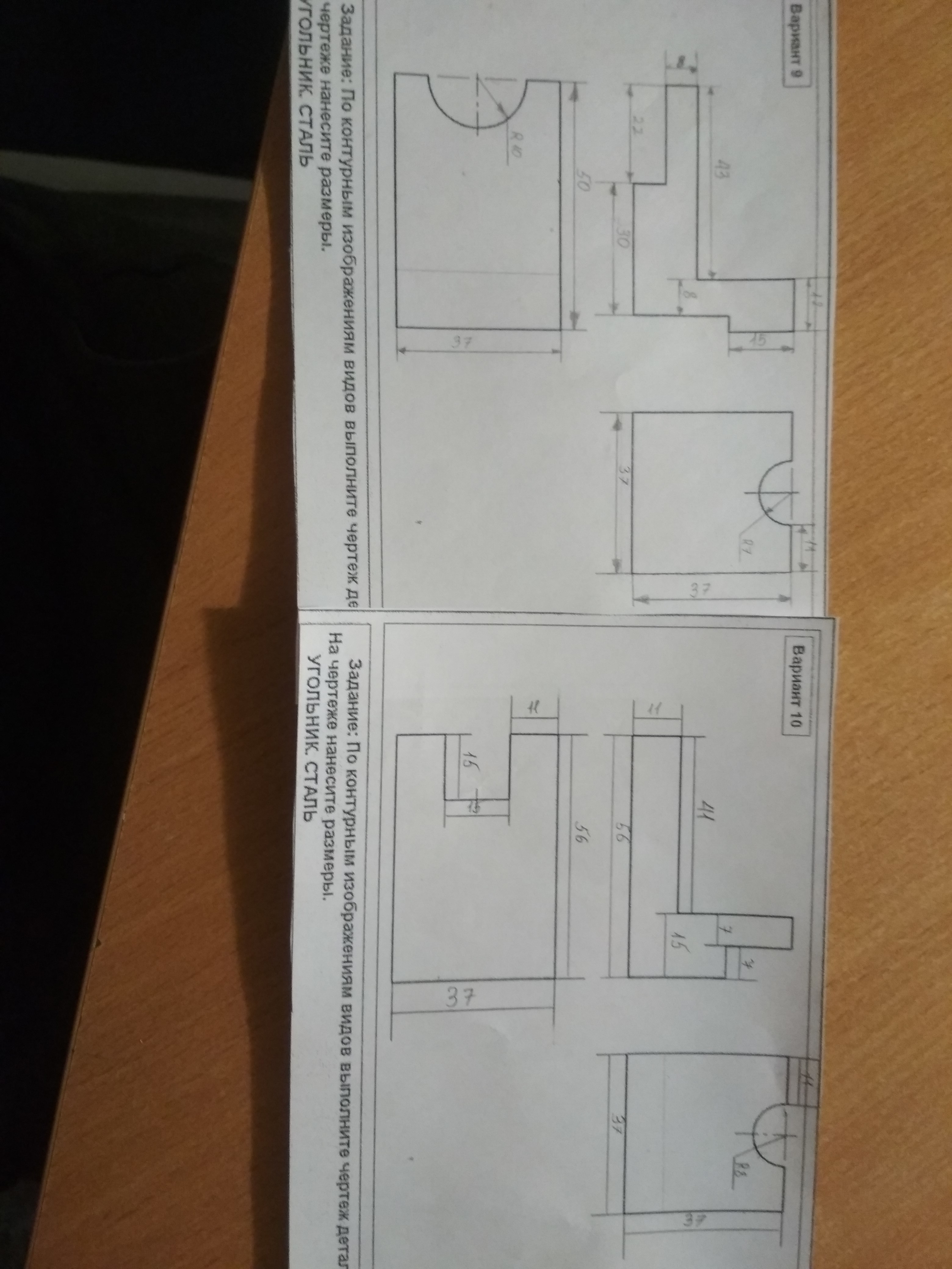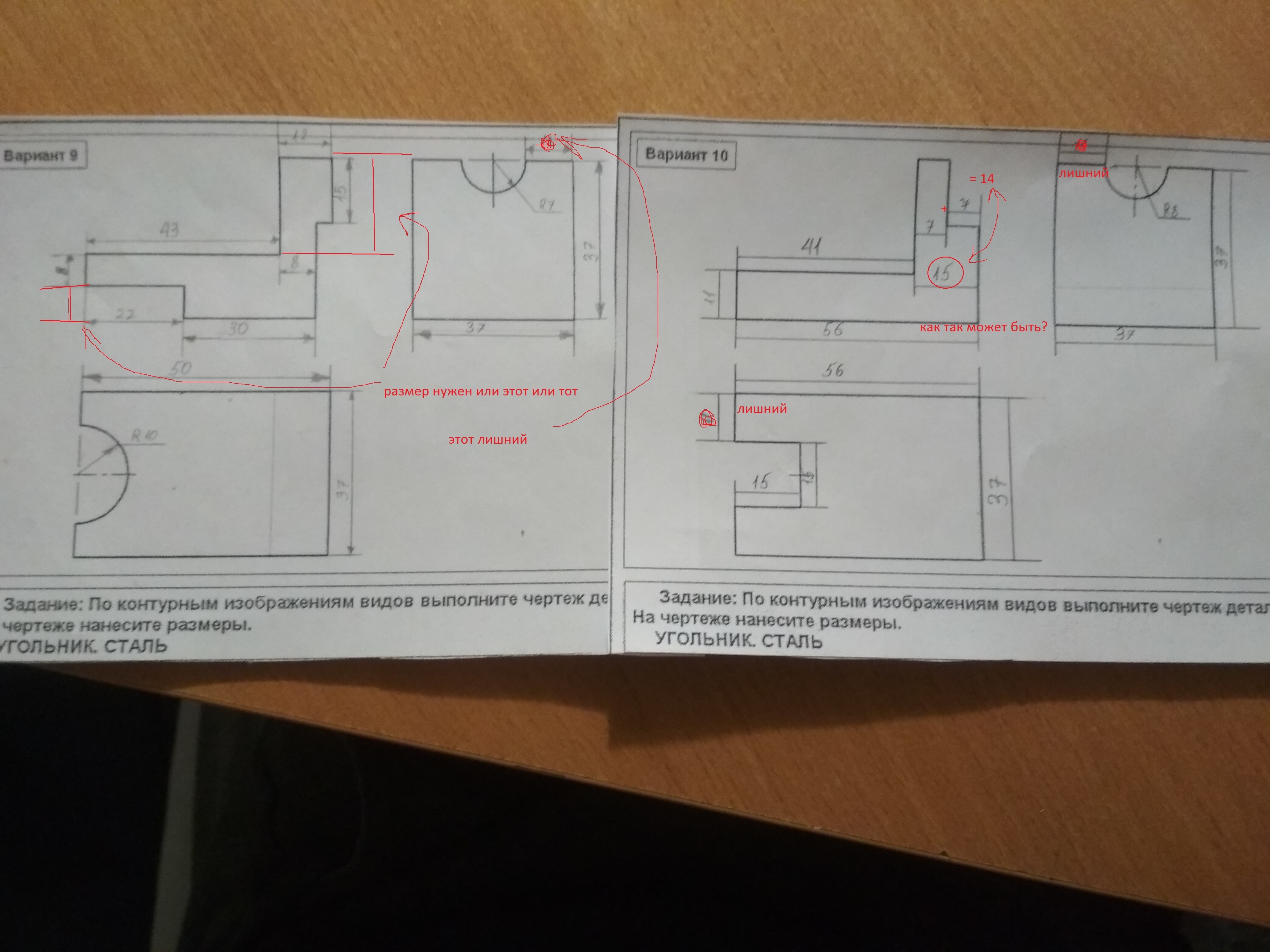 очень много ошибок, просмотри внимательно. Не хватает множество линий и невидимых линий, размеры на чертежах, не должны повторяться.