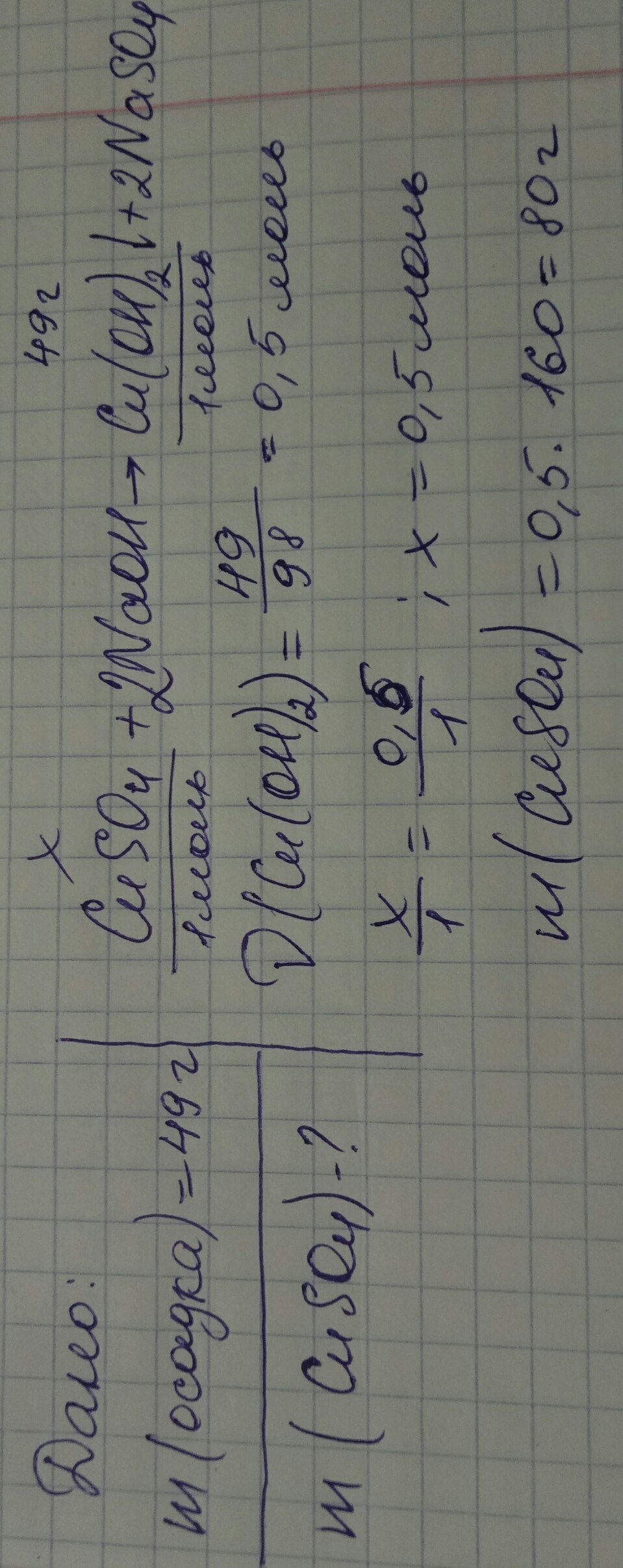 Какую массу сульфата меди (II) необходимо взять для реакции с гидроксидом натрия, чтобы получилось 49 г. осадка?