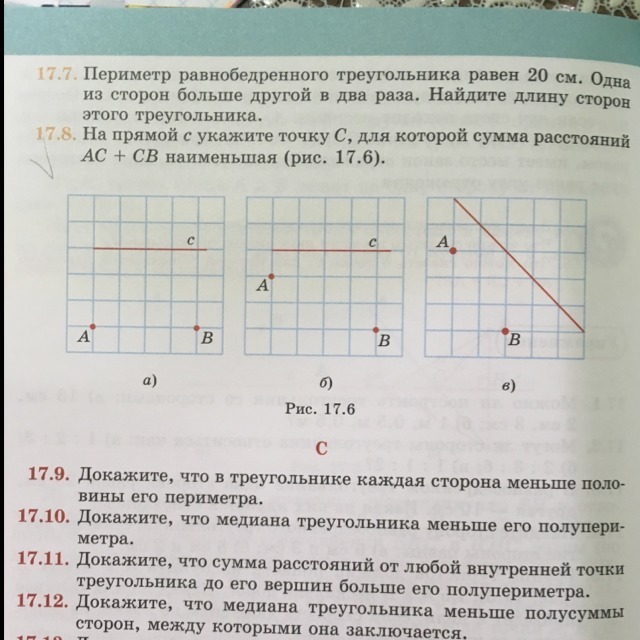 на прямой c укажите точку C, для которой сумма расстояний AC+CB наименьшая упражнение 17.8