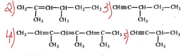 пронумеровать атомы углерода главной цепи, начиная с ближайшего к разветвлению конца или от кратной связи( = перед ≡)