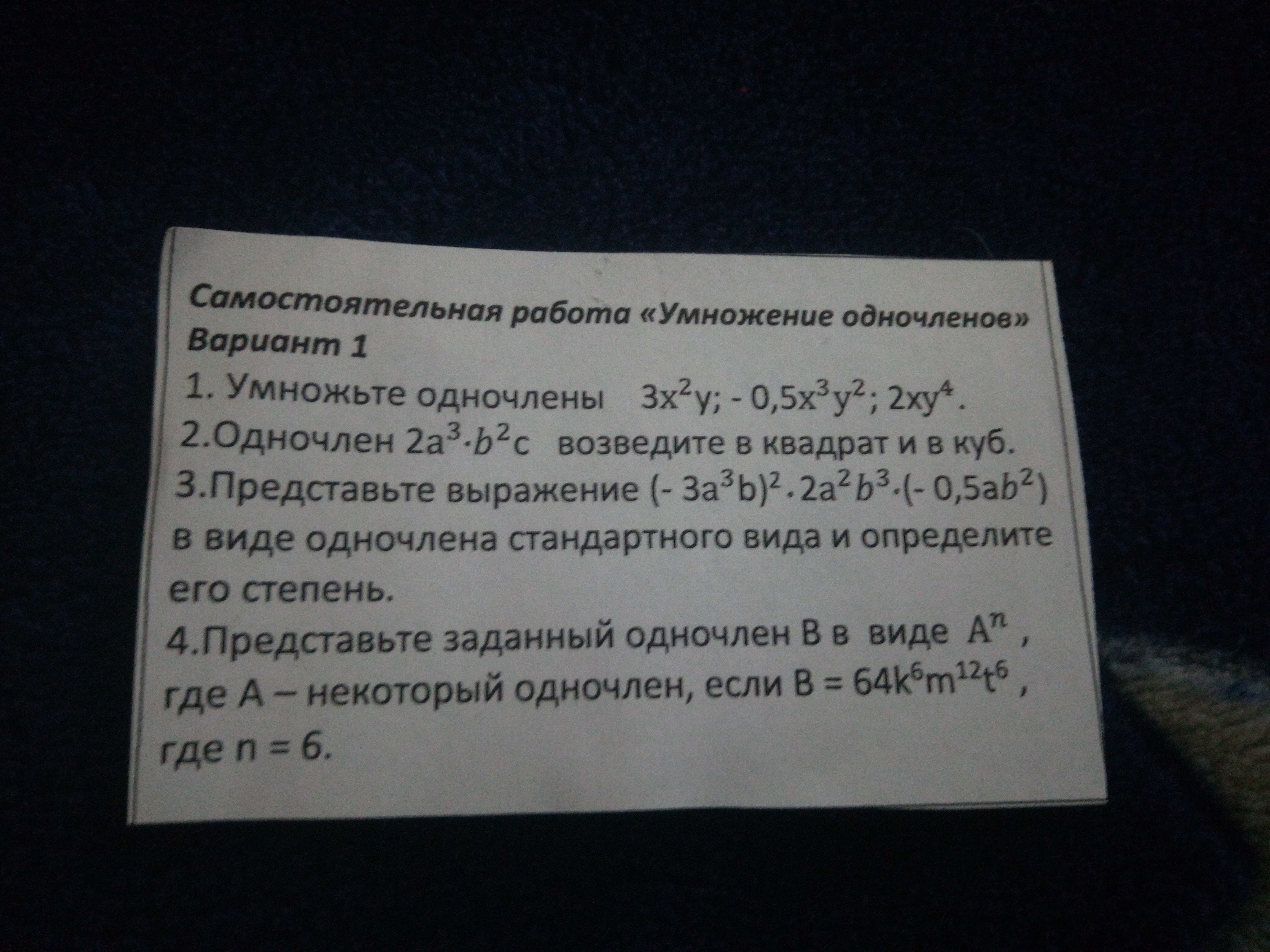 1. 3x^2*y * (-0,5x^3*y^2) * 2x*y^4 = -3x^6*y^7