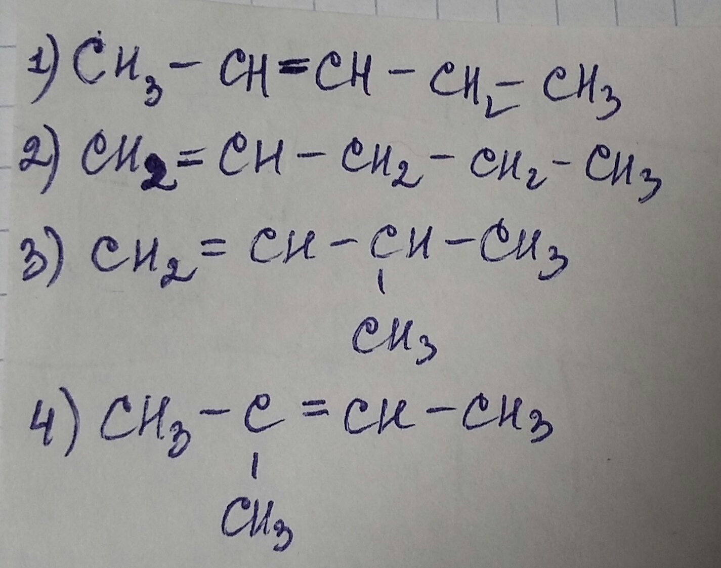 Задание* надо из 5 атомов углерода составить структурную aлкенов формулу с двойной связью и привести 2 изомера