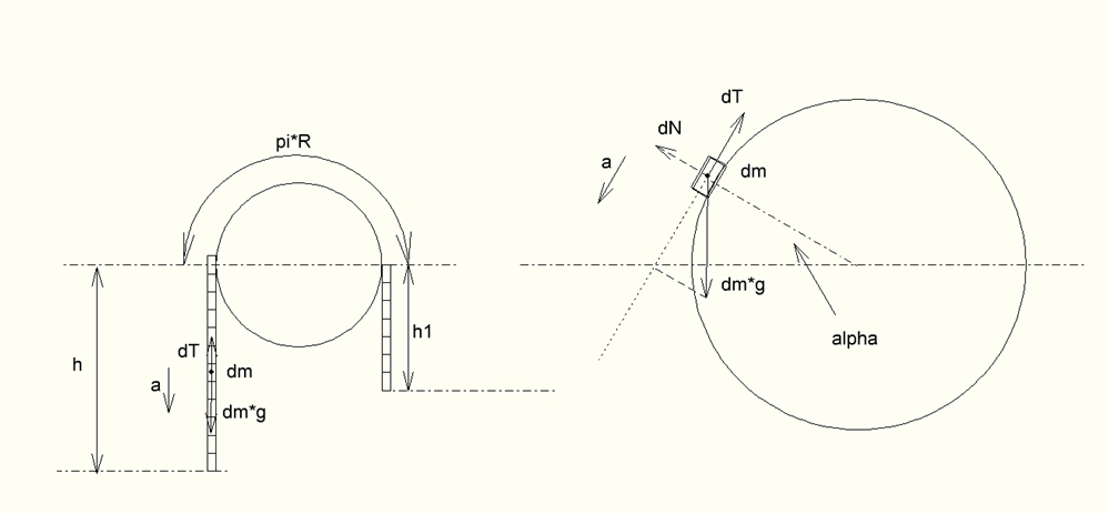 F=P=m₁g=(m/L)•[0,5(L-πR)+R]g
