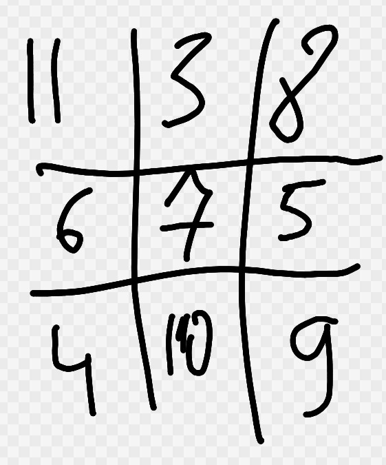 Расставьте в таблице 3х3 числа 3, 4, 5,…11 так, чтобы произведения чисел в строке и