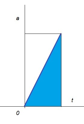 Построим график ускорения. Из него следует, что величина скорости равна площади фигуры, лежащей под графиком ускорения. А это и есть площадь ТРЕУГОЛЬНИКА