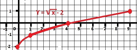В вопросе Y = Vx - 2, а не Y = v(x-2)