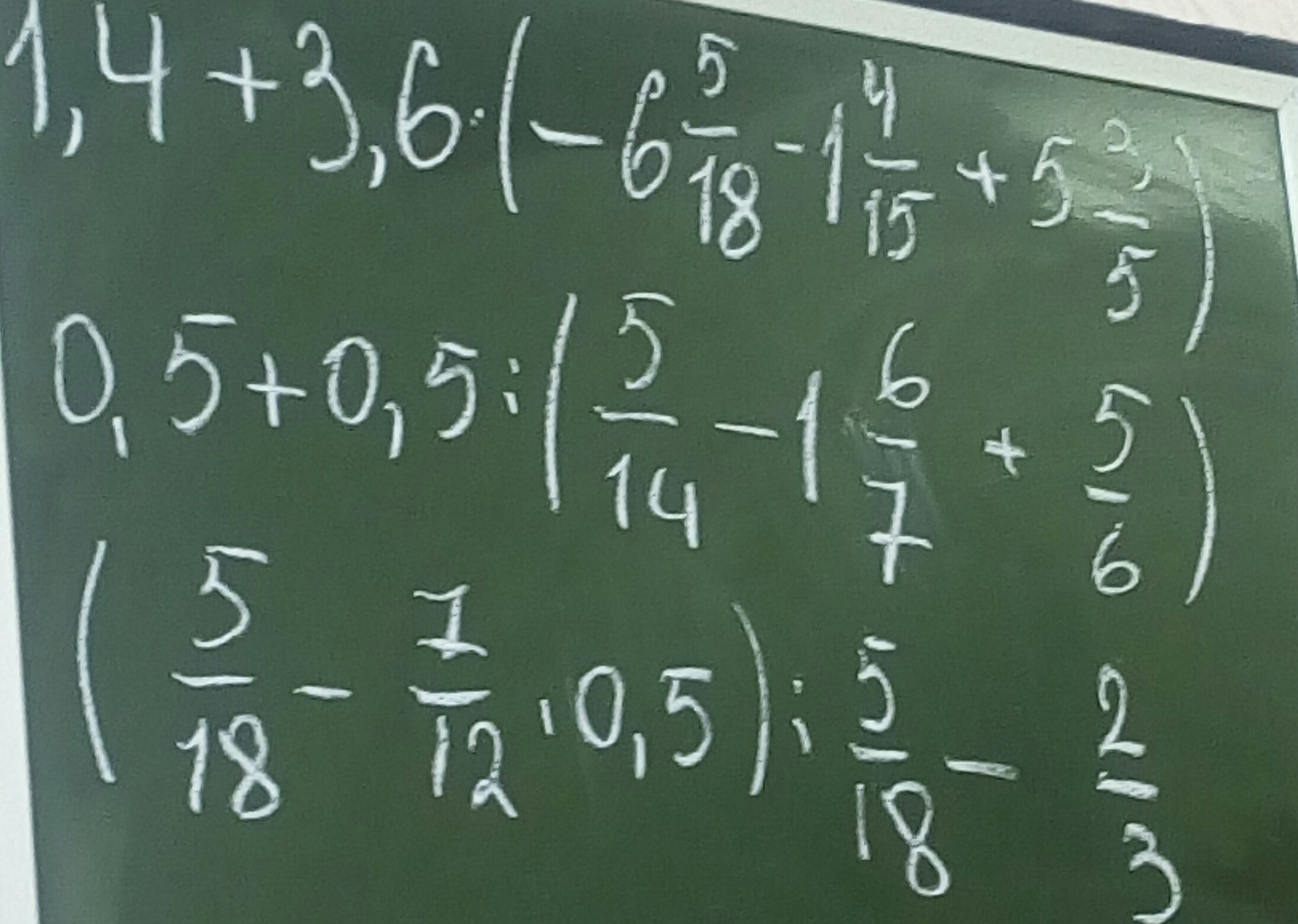 1,4+3,6 * (-6 5/18 -1 4/15 +5 3/5) приводим к общему знаменателю