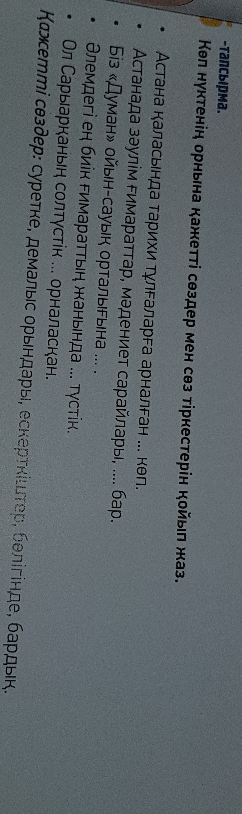 1 слова орындар 2 слова еск ерткиштер 3 слова бардык 4 слова б суретке 5 слова ьолигинде