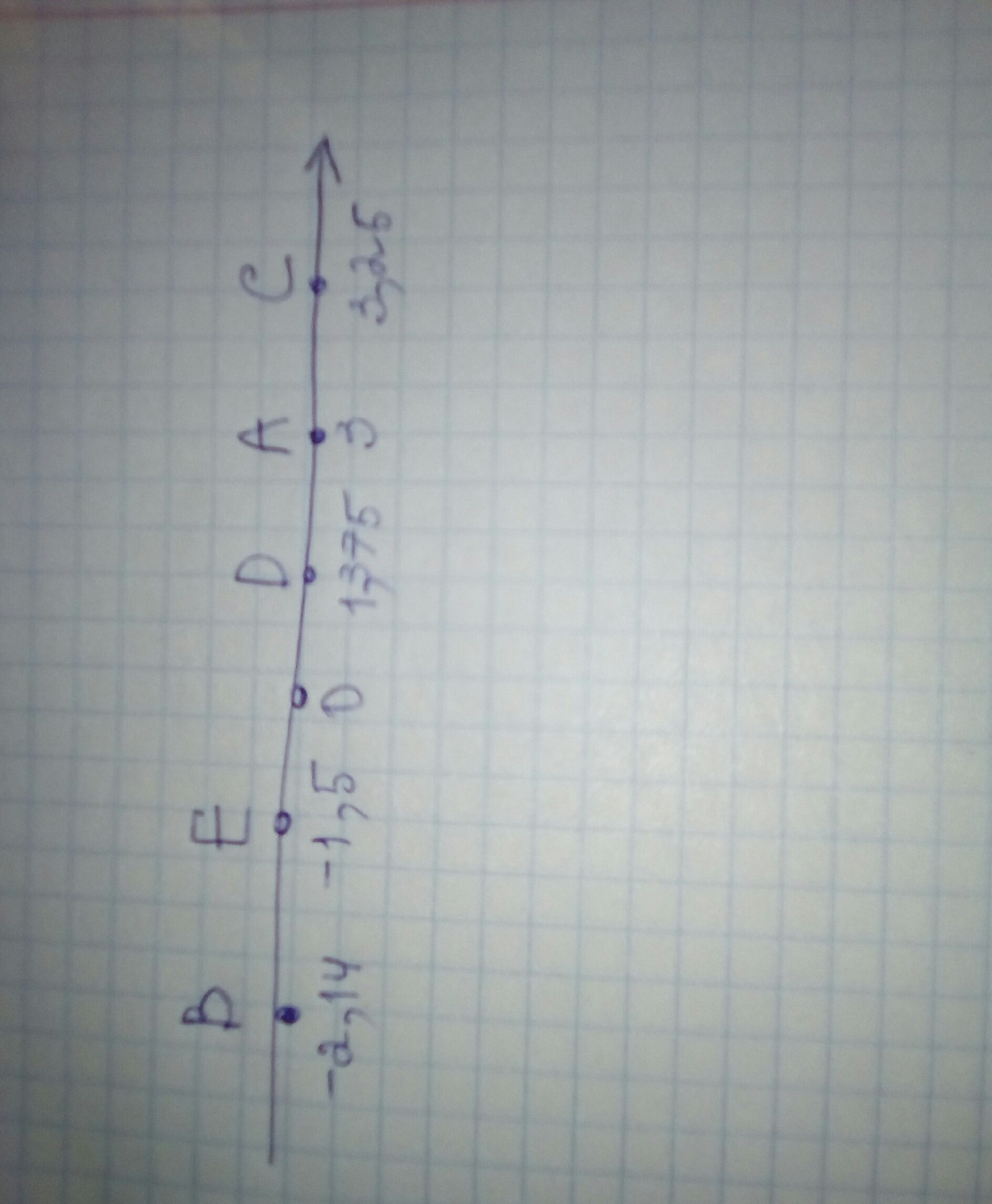 на данной координатной прямой Ox отметьте точки А(3),В(-2,1.4 ), С(3,25),D(1,375), E(-1,5) помогите пж