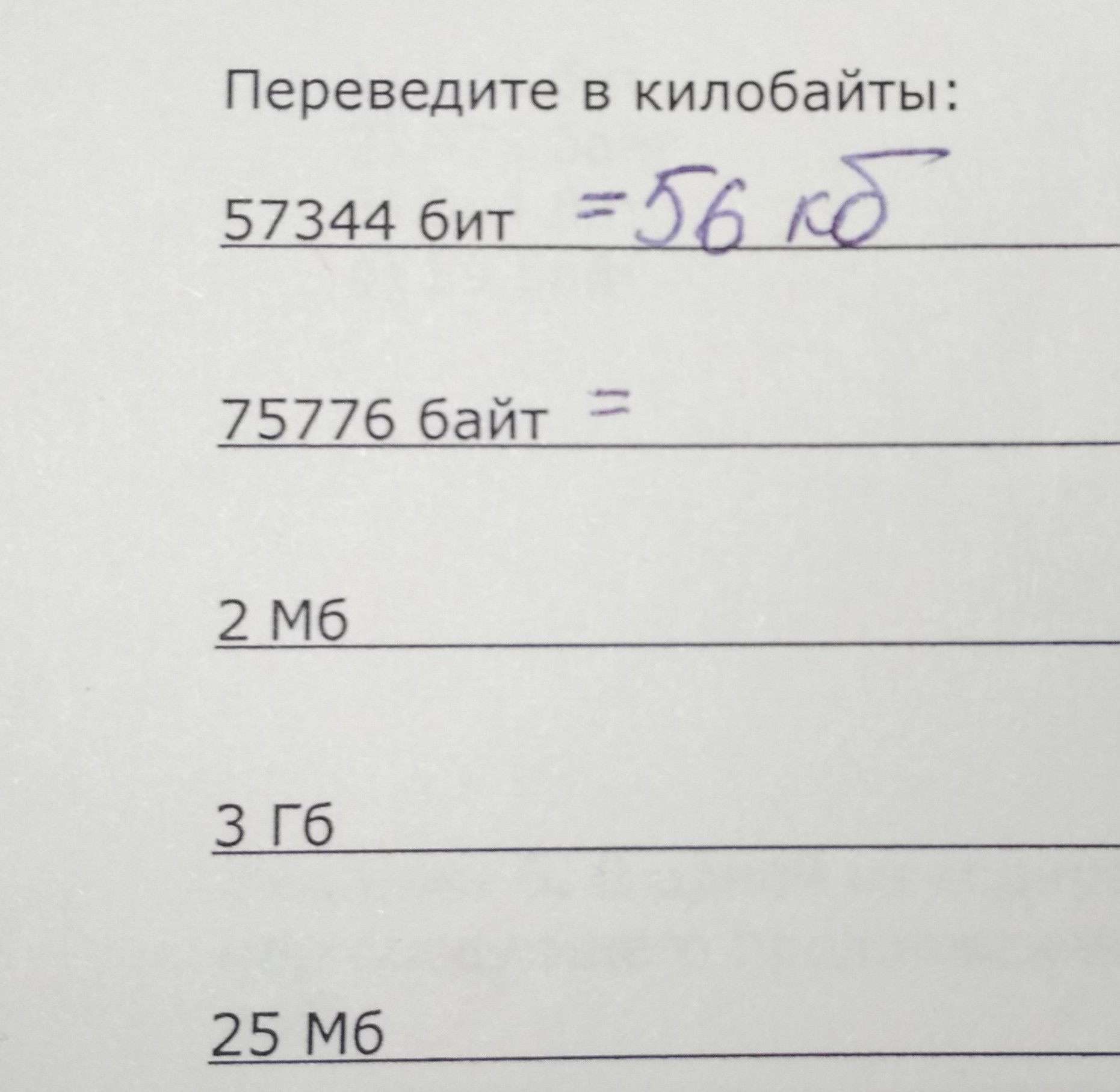 57344 бит = 57344 / 8 / 1024 = 7 кб