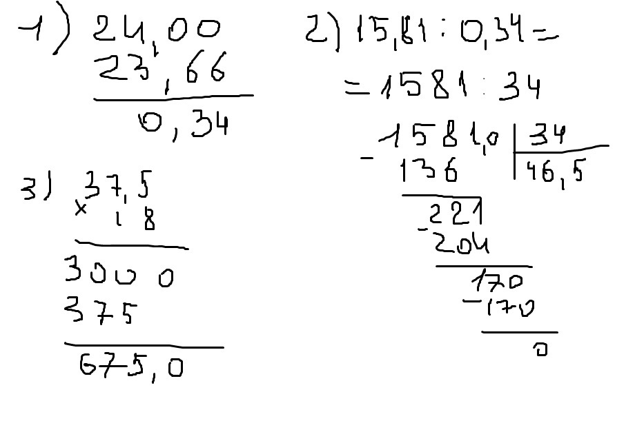 15,81 : (24 - 23,66) - 18 * 37,5 = - 628,5