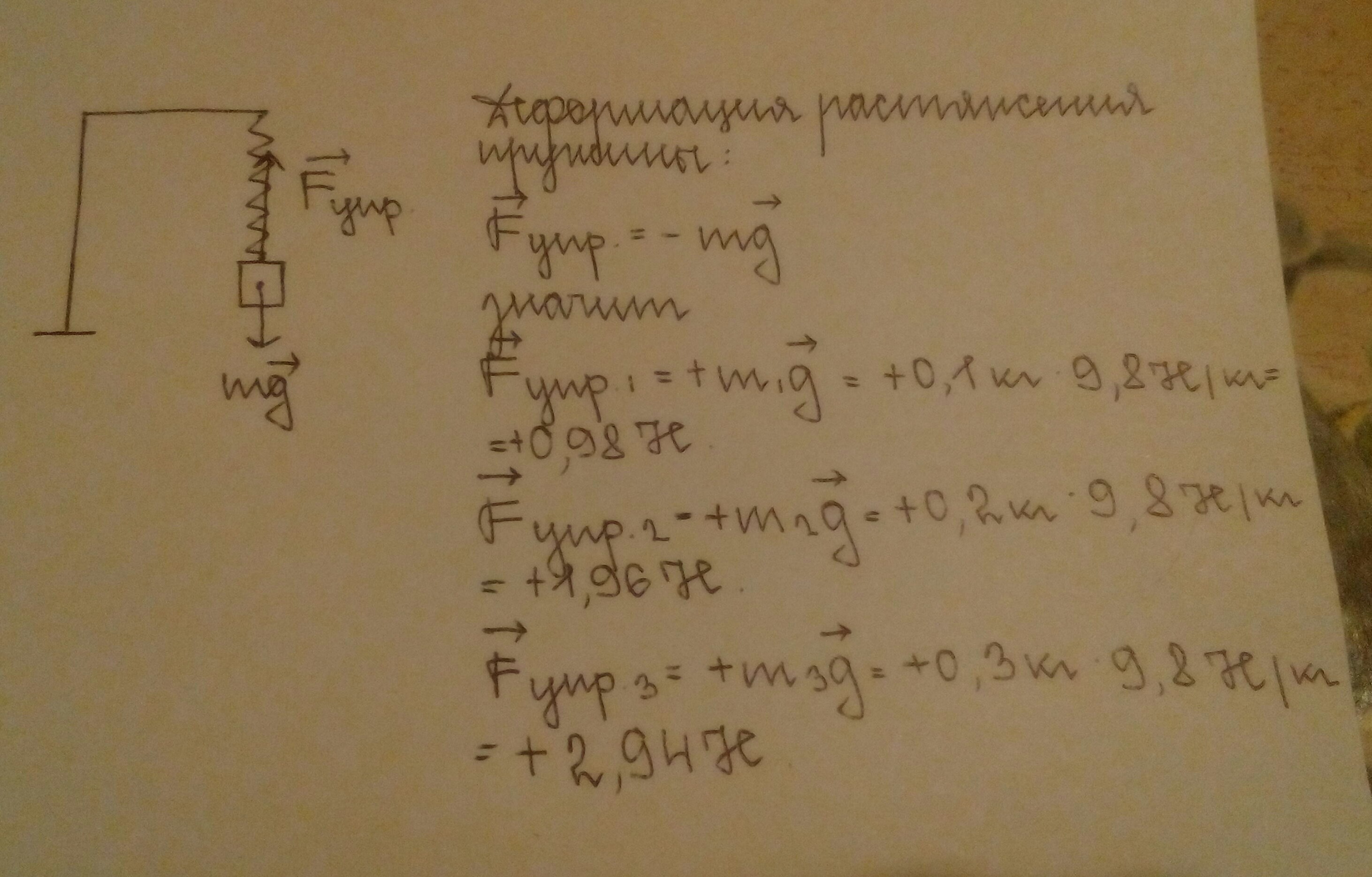 Найдите направление и величину силы упругости пружины под действием внешней силы определяемой ?