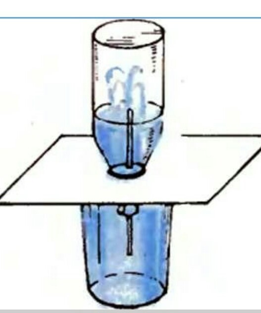 Вода стрямится к свободному пространству и вытесняется на верх.