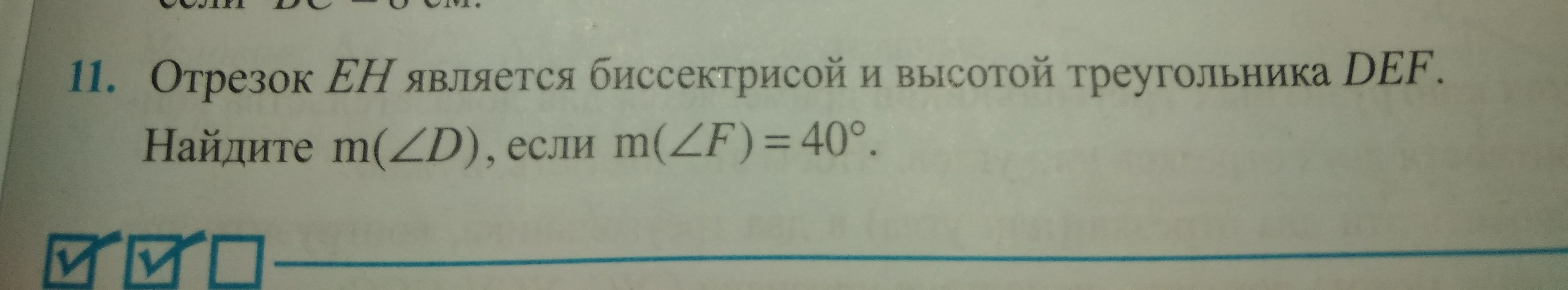 11)1) Так как ЕН биссектр и высота тр DEF, то тр DEF - р/б (по признаку) с основанием DF.