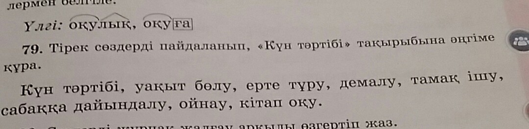Мен осы күннен бастап күн тәртібін құрған болатынмын.Күнде таңертең ерте тұрамын.Таңғы тамағымды ішемін.Сабаққа дайындаламын.Кейін бос уақытымда кітап оқимын.Арасында аулада ойнаймын.Сабаққа уақыт бөлемін.Демалыс күндері демаламын.