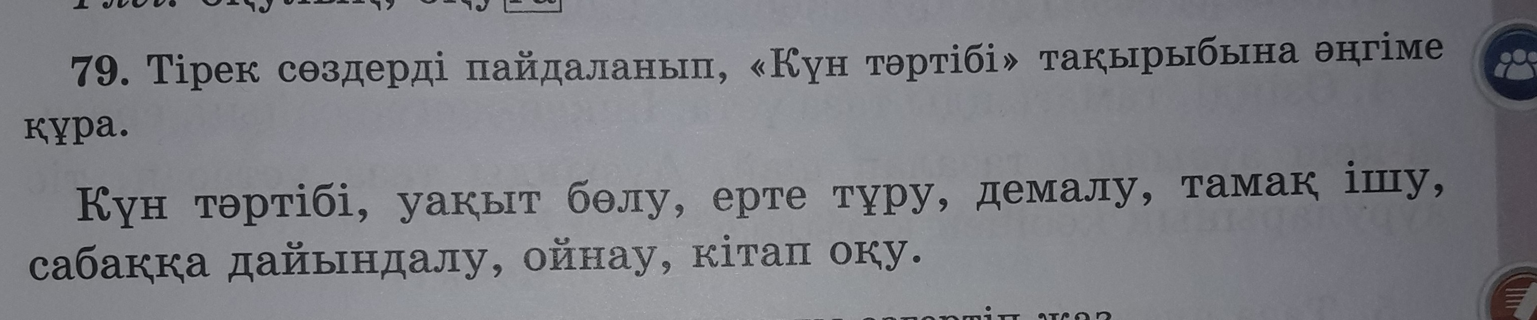 Əрбір адам күн тəртібін сақтау қажет.Күн тəртібінің орындалуына көңіл бөлу керек.Бірінші ерте тұру керек,тамақ ішуі керек.Содан кейін демалуы керек.Демалып болғаннан кейін ойнау керек.Содан кейін кітап оқу қажет жəне сабаққа дайындалуы қажет