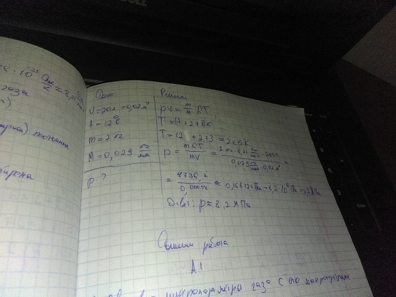 Каково давление сжатого воздуха, находящегося в баллоне вместимостью 20 л при температуре 12 °С, если масса этого воздуха 2 кг? Модераторы, только не удаляйте :))