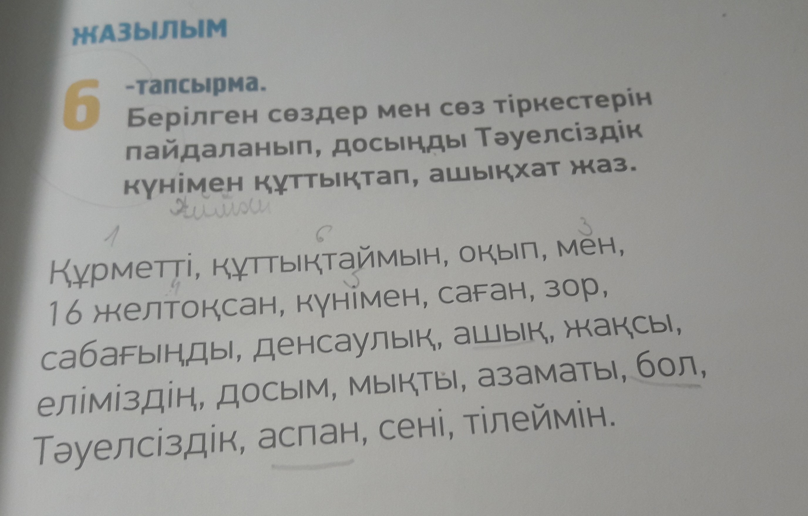 Құрметті досым, сені 16 желтоқсан Тәуелсіздік күнімен құттықтаймын. Саған зор денсаулық,ашық аспан тілеймін. Сабағыңды жақсы оқып,еліміздің мықты азаматы бол.