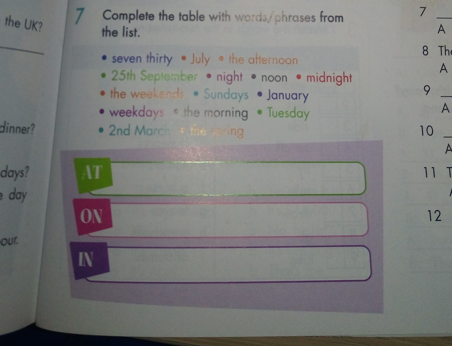 ON:25th September,Sundays,weekdays, Tuesday,2nd March