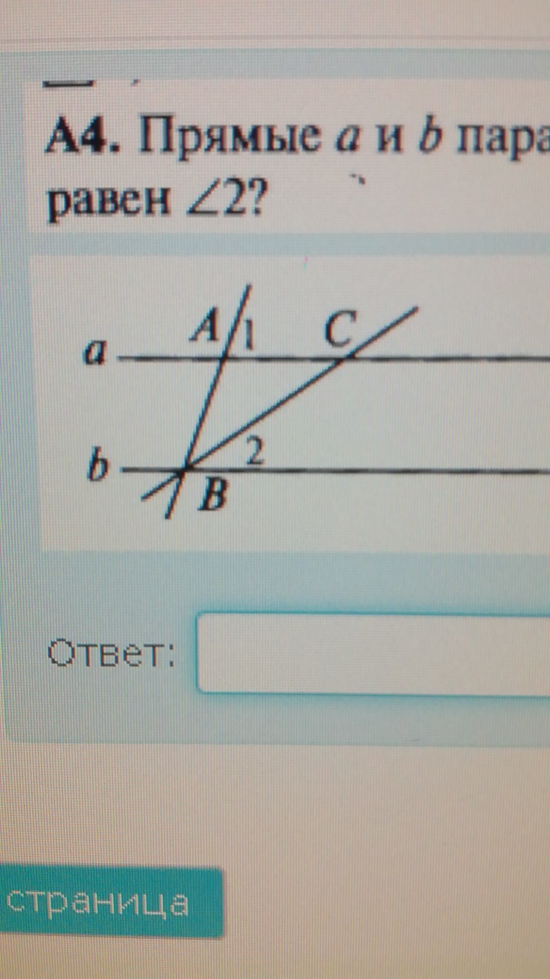 Прямые а и б параллельны, АБ=АС, угол 1 =70 градусов. Чему равен угол 2? есть ответы 1) 110 2) 40 3) 70 4) 35
