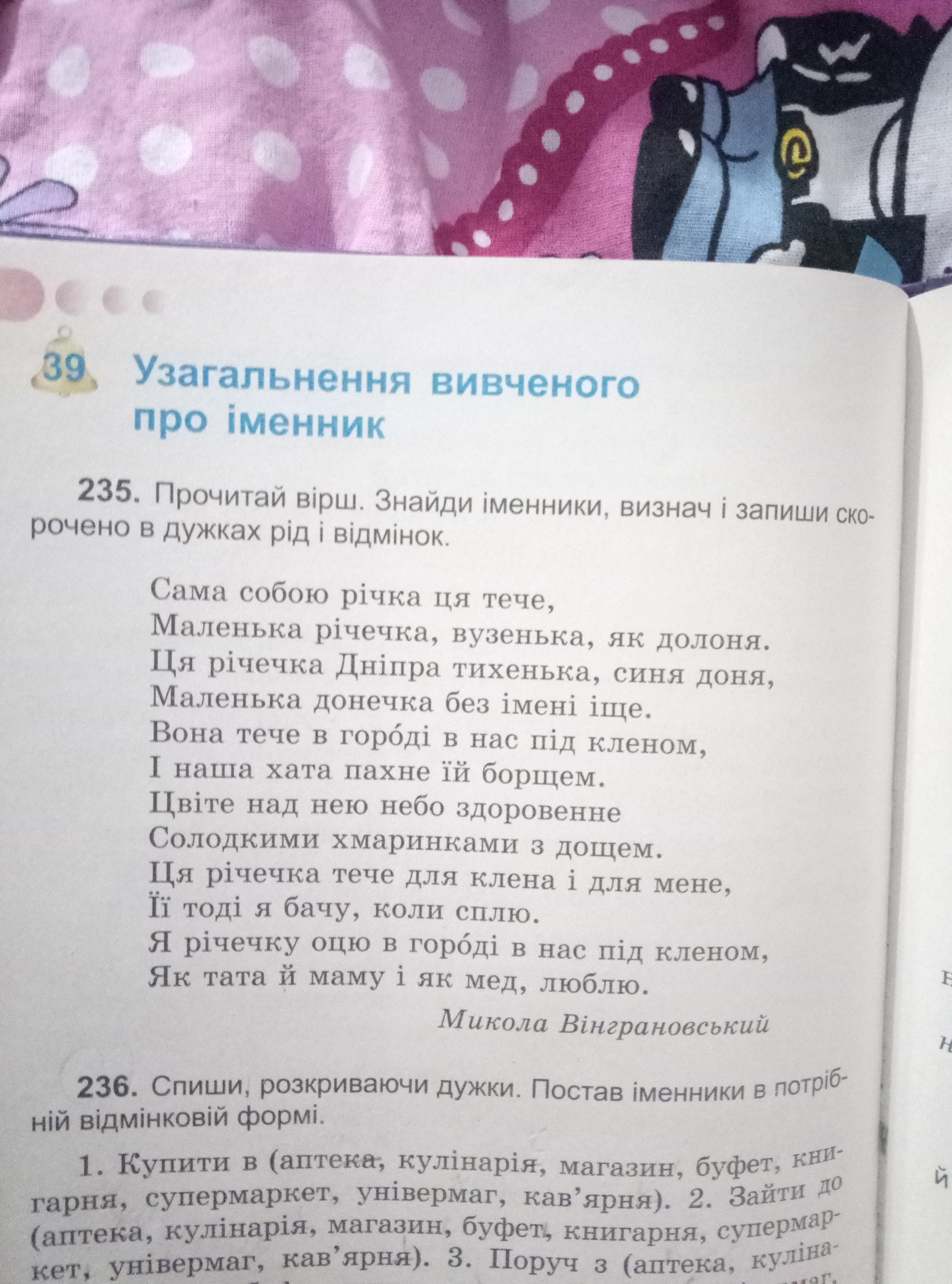 річка, річечка, долоня, доня, донечка, хата, небо, мед