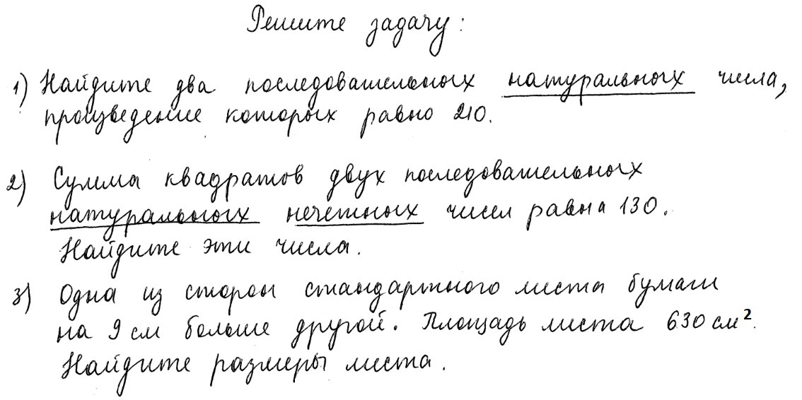 Можно решить квадратными уравнениями, можно простым подбором, что не составляет трудности с данными заданиями. Решение писать не буду, ибо я ограничился подбором.