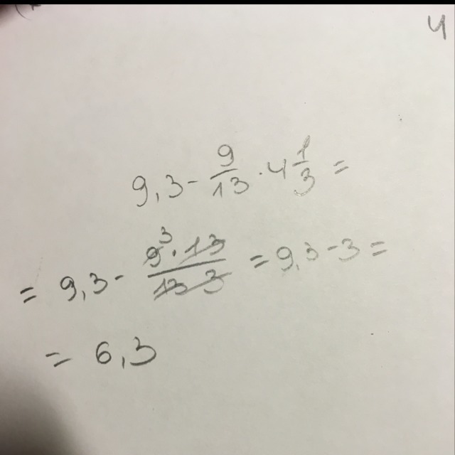 сначала перемножаем дроби потом вычитаем из 9,3 результат умножения