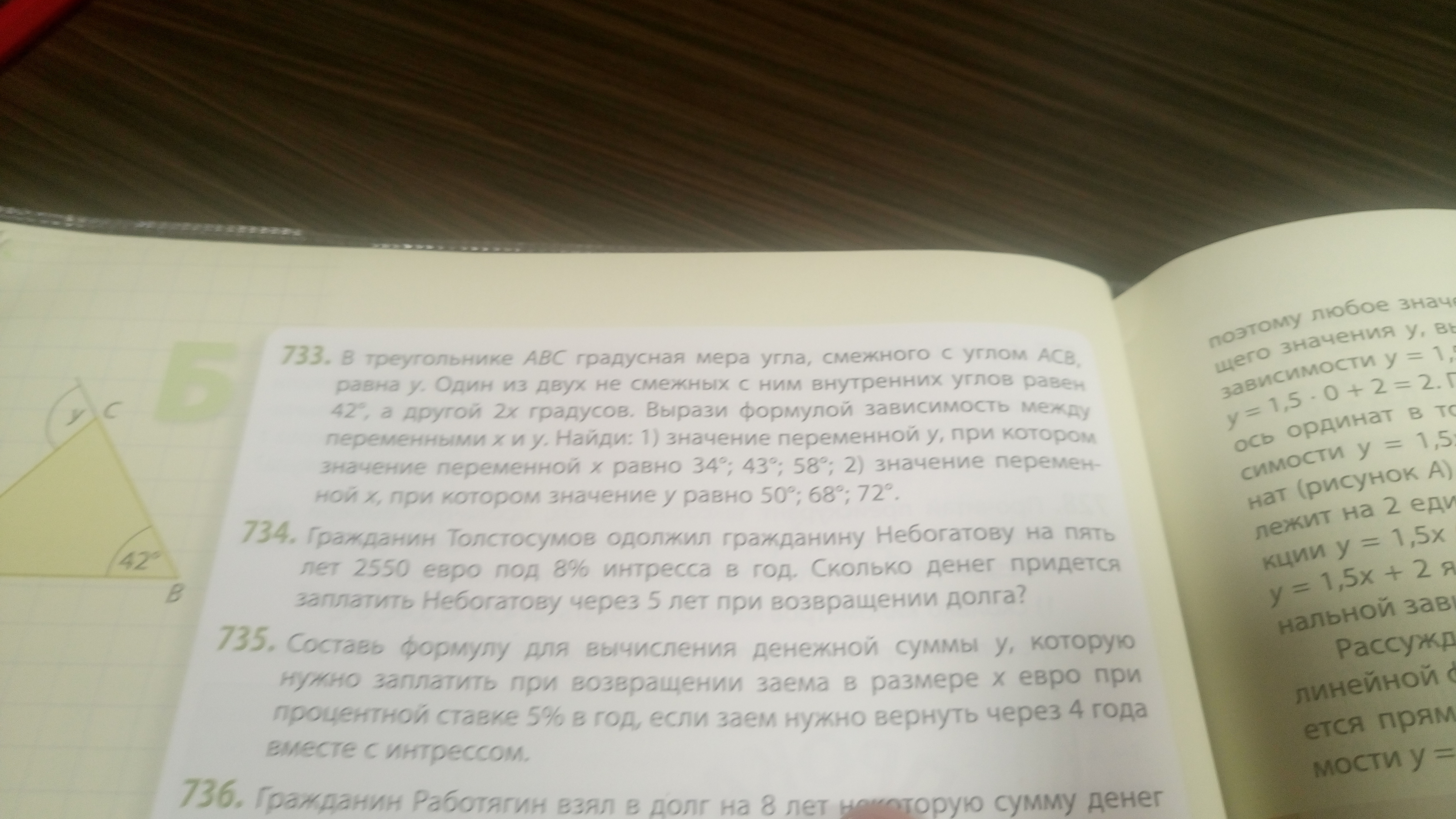 732.Значение функции- это у, значит мы можем подставит и превратить в уравнение: 3,6=0,6a+6