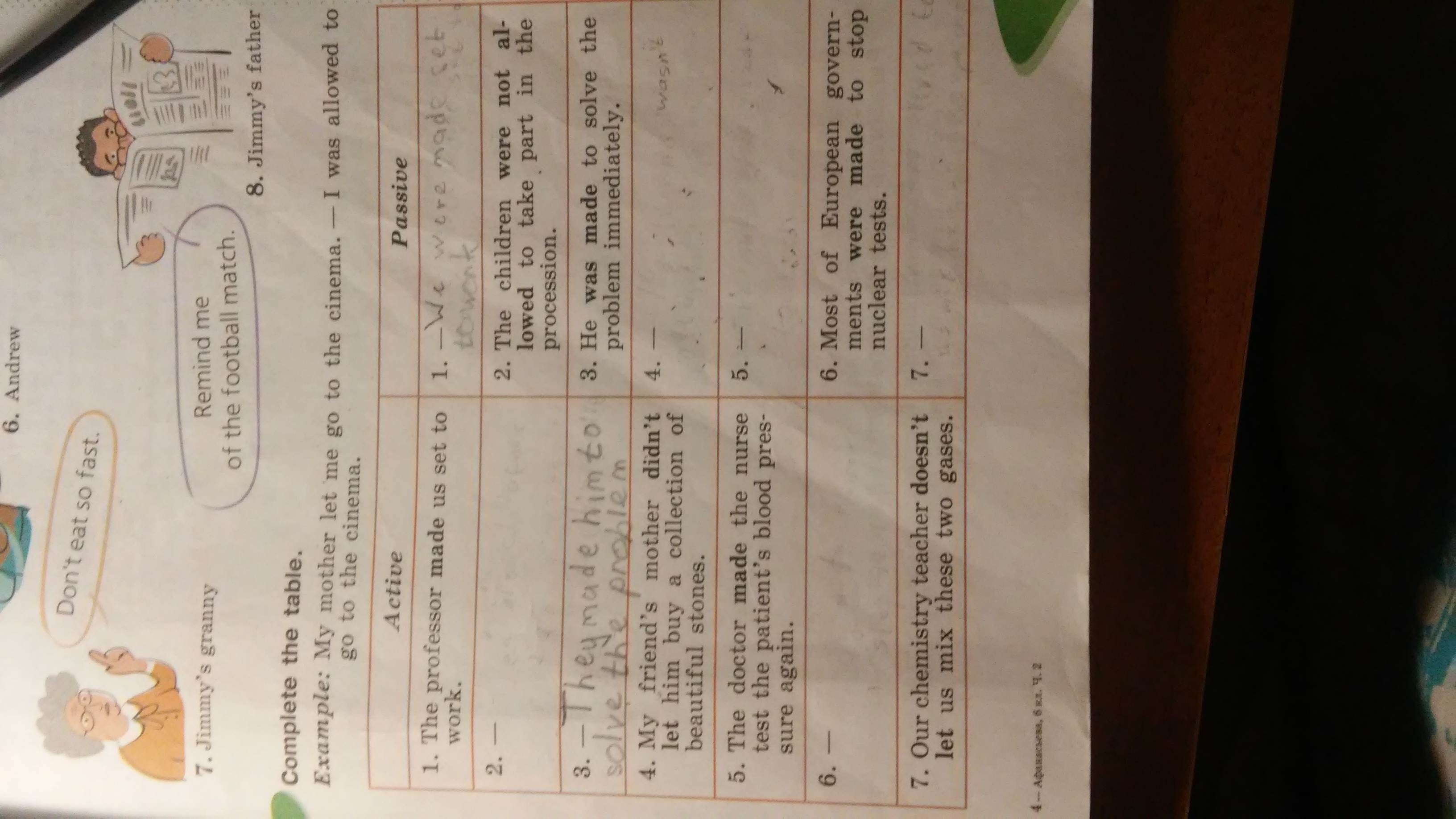 4. My friend wasn't allowed to buy a collection of beautiful stones. 5. The nurse was made to test patient's blood pressure again. 6. The Nuclear Test Ban Treaty made most of European countries stop nuclear tests. 7. We are not allowed to mix these two gases.