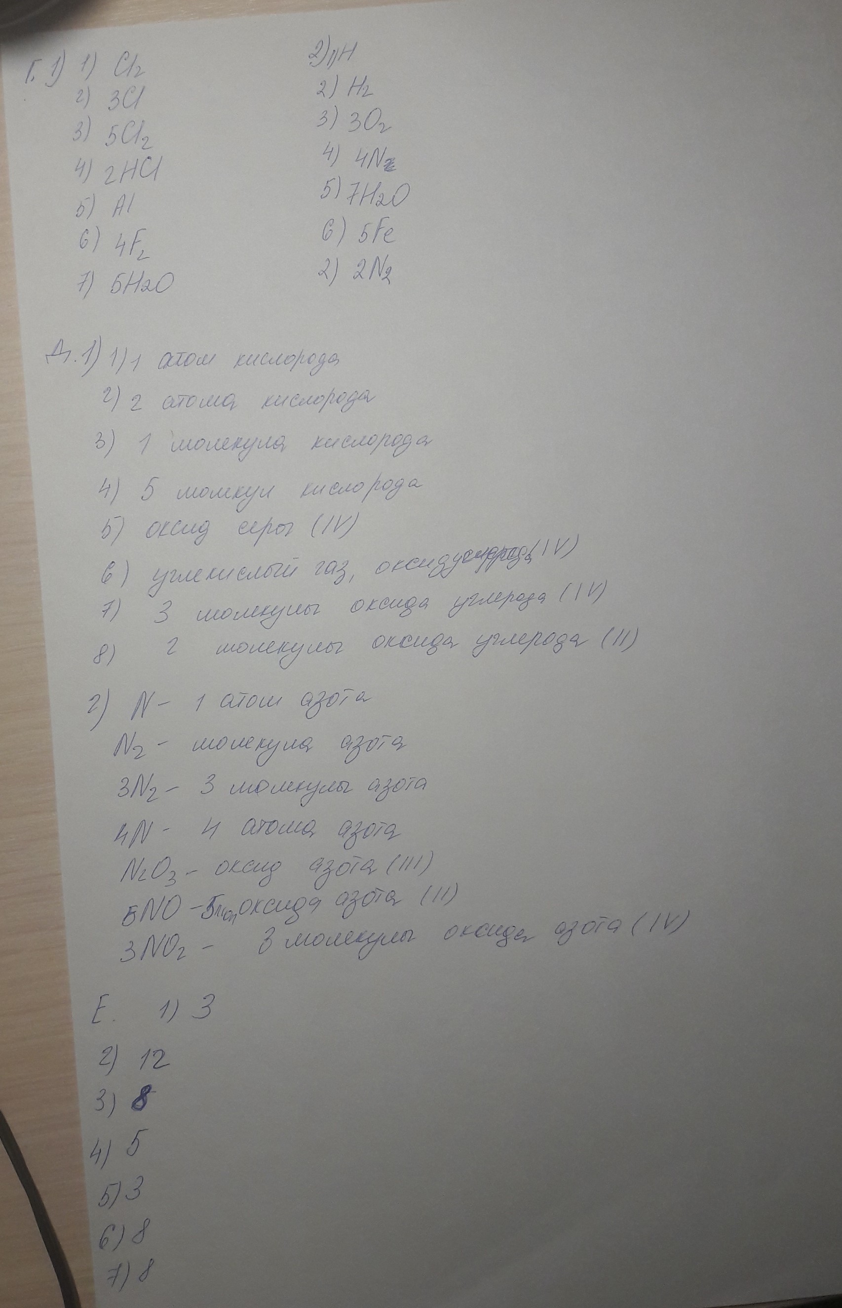 1) 1 атом кислорода, 2 атома кислорода, молекула кислорода, 5 молекул кислорода, 1 молекула углекислого газа, 3 молекулы углекислого газа, 2 молекулы угарного газа
