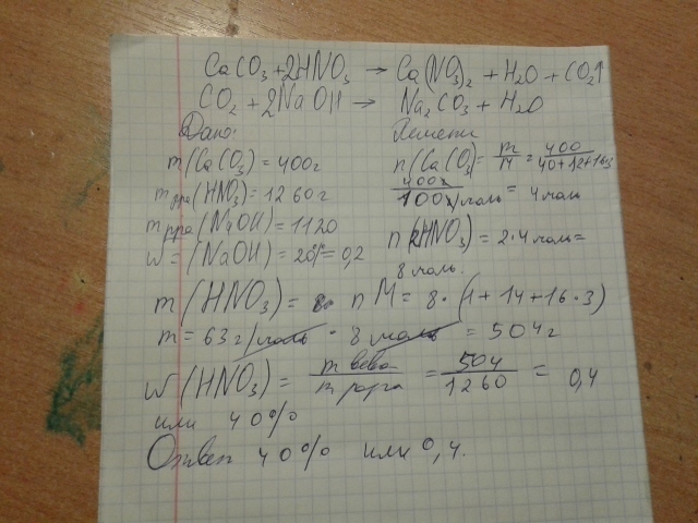 навеску мела , массой 400 г, обработали раствором азотной кислоты массой 1260г. для поглощения выделившегося газа потребовалось 1120 гтраствлоа гидроксидакалия с массовой долей 20%. рассчитайте массовую долю азотной кислоты в использованном растворе! пожалуйста, очень срочно