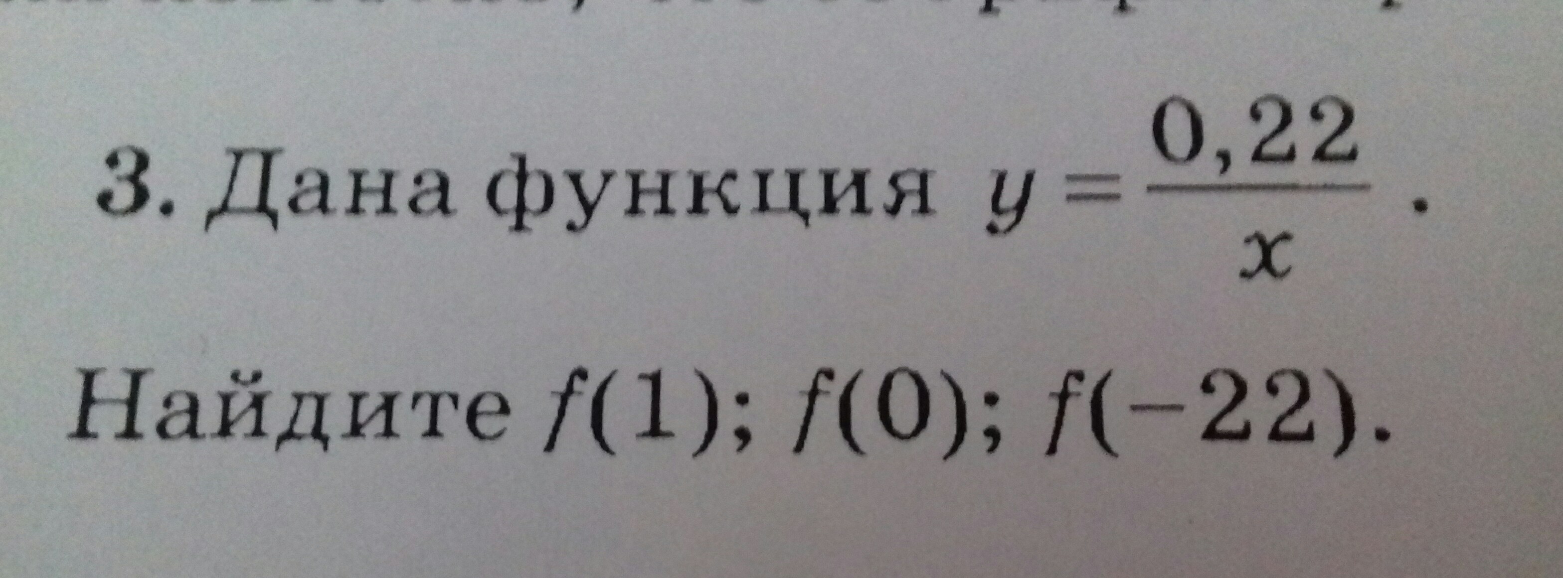 f(0) не определена, т,к на 0 делить нельзя, f(-22)=0,22/-22=-0,01
