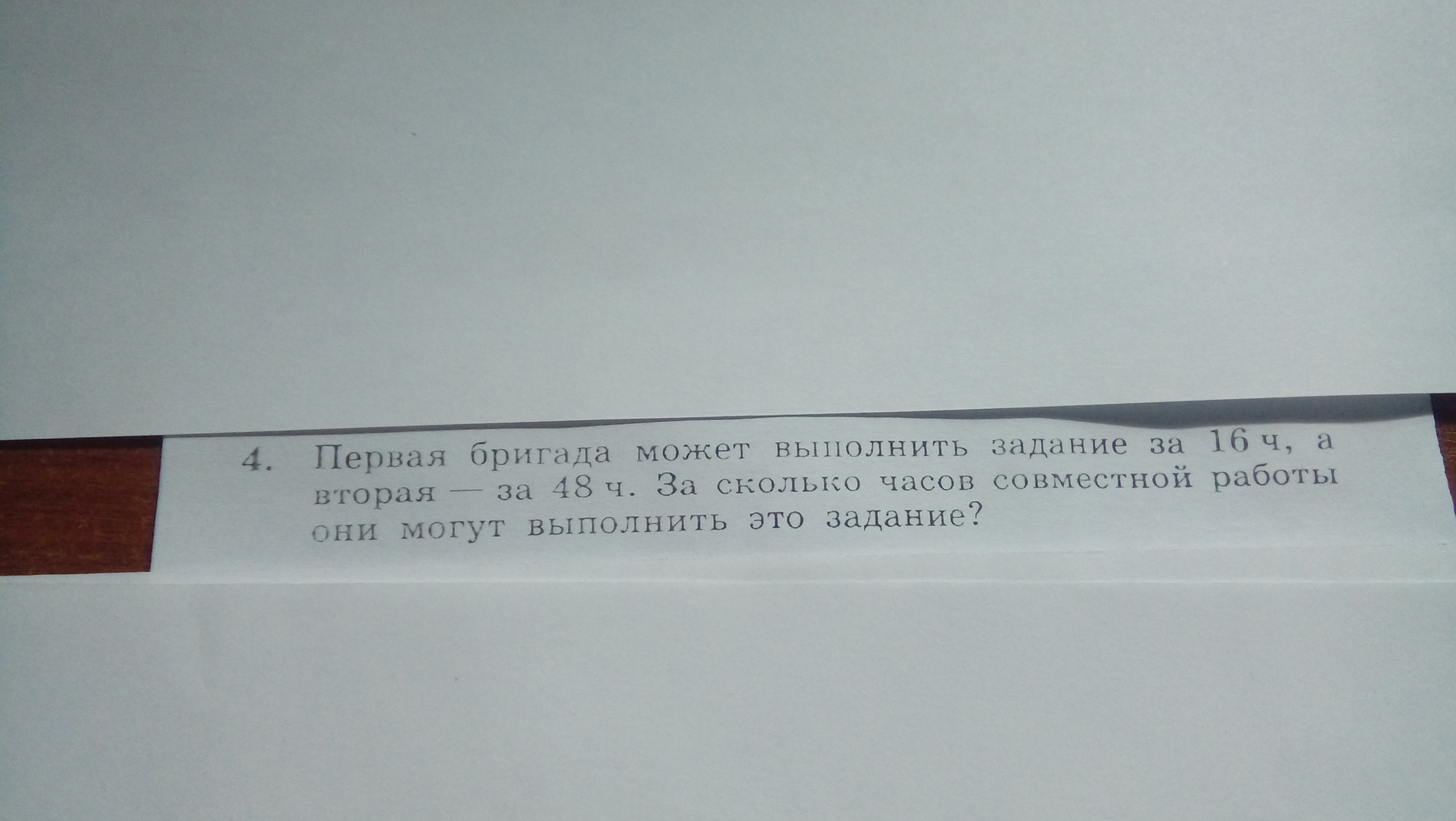 Пусть объём работы равен х, тогда первая бригада за один час выполняет х/16 часть работы, а вторая бригада за один час выполняет х/48.