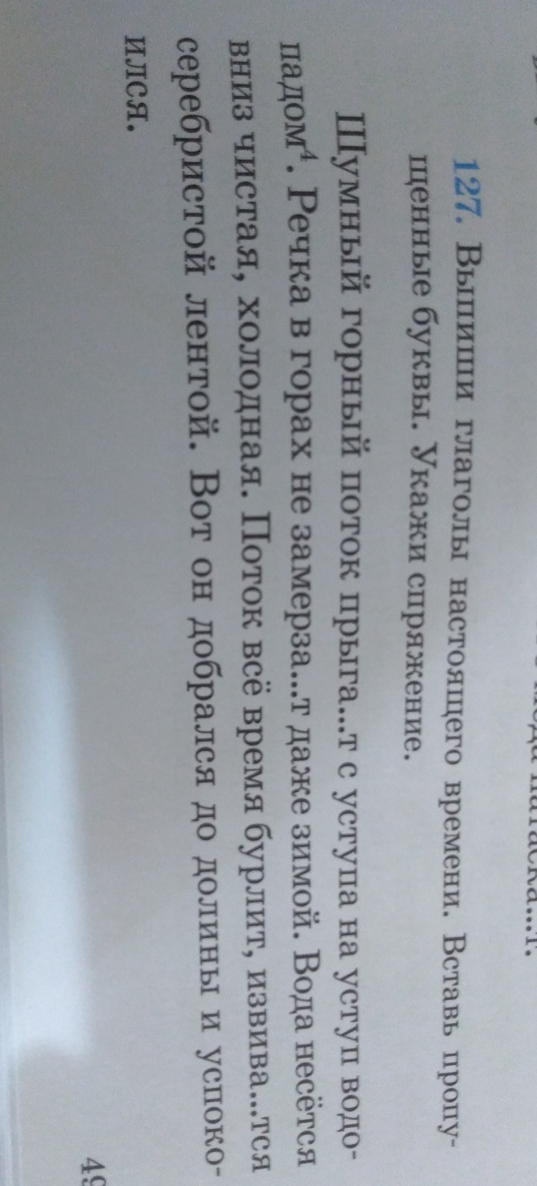 Прыгает,замерзает, несётся, бурлит, извивается.