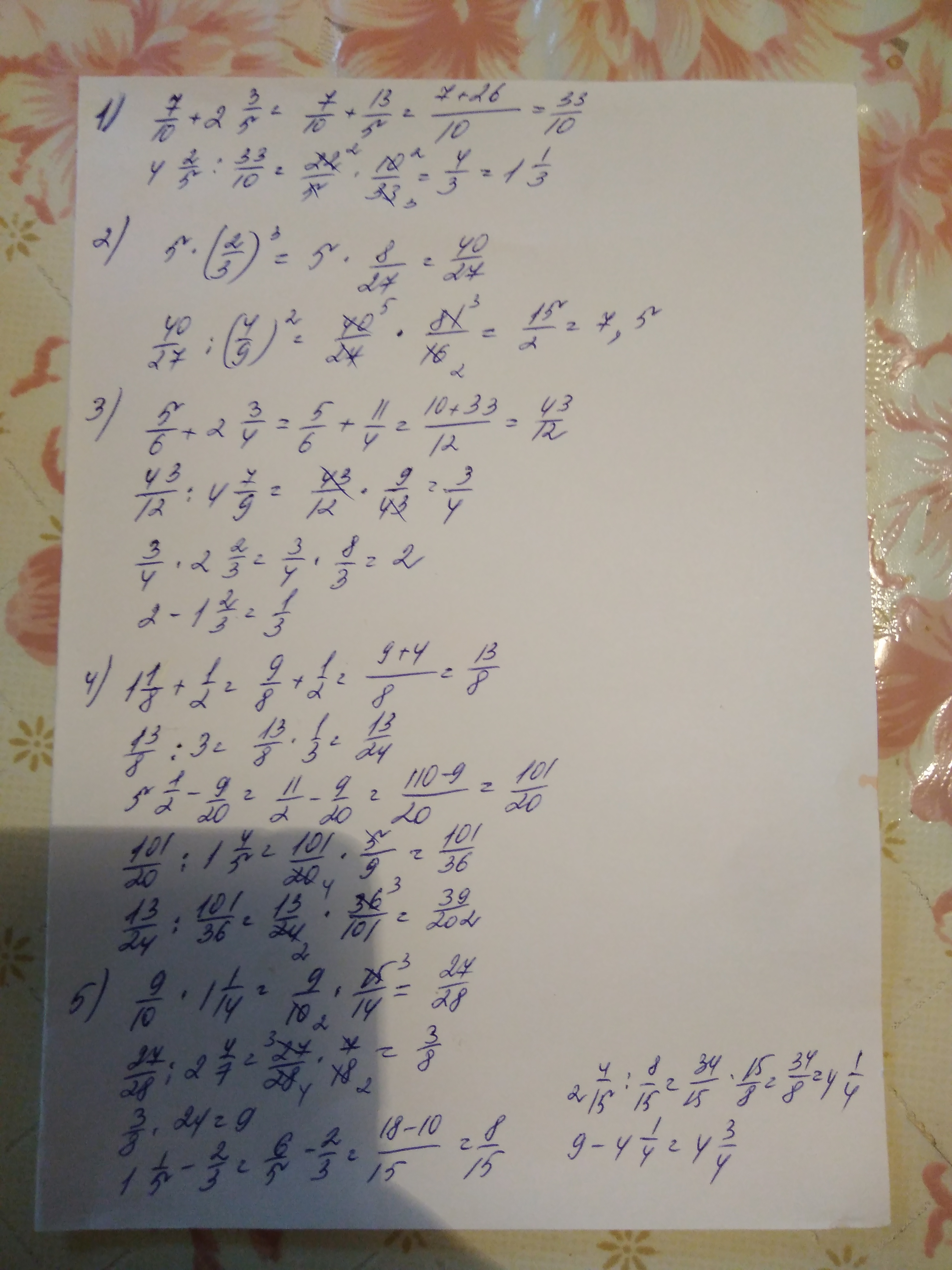 5)9/10 • 1 1/14 : 2 4/7 • 24- 2 4/15 : (1 1/5-2/3)