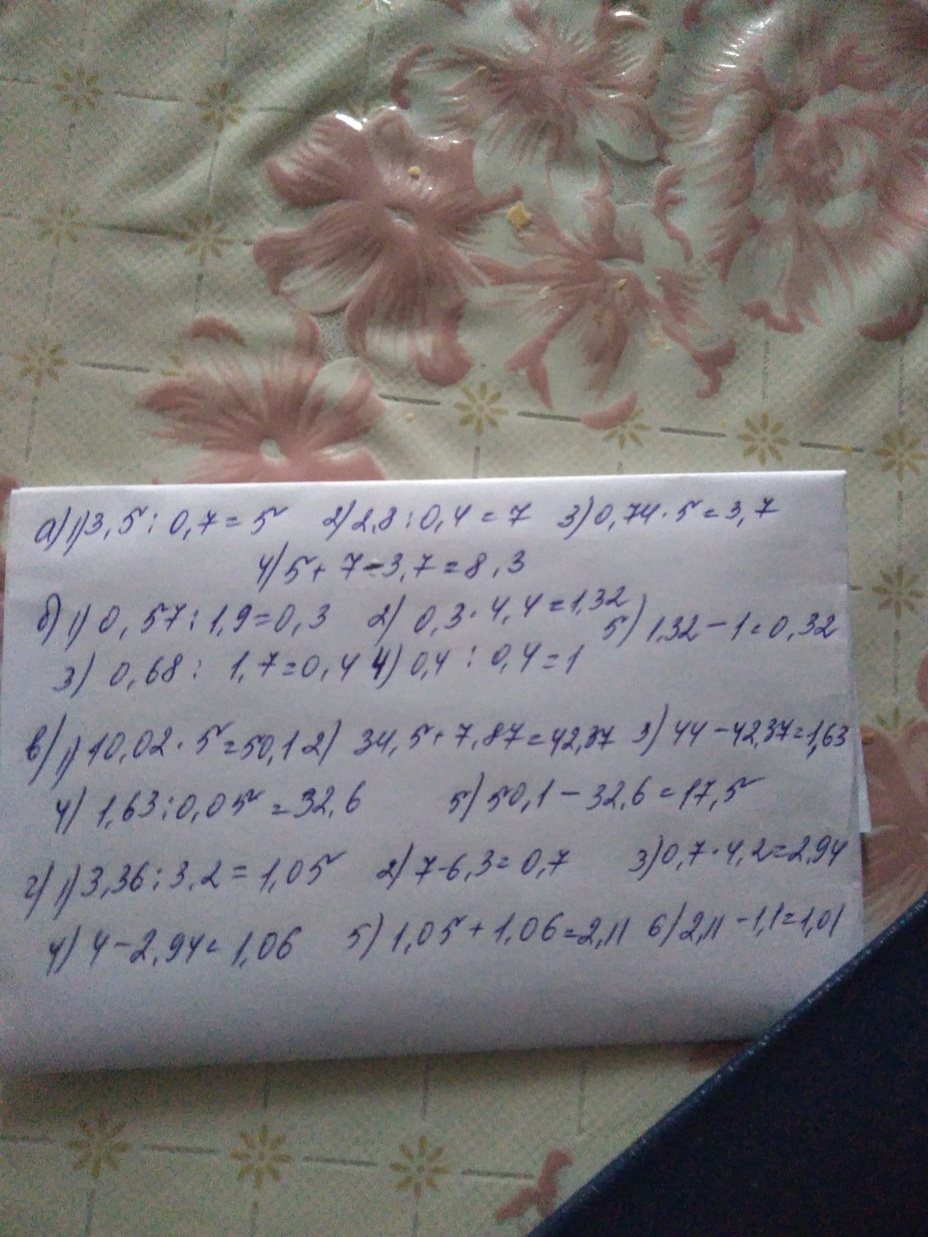 а) 3,5:7+2,8:0,4-0,74×5=3,8