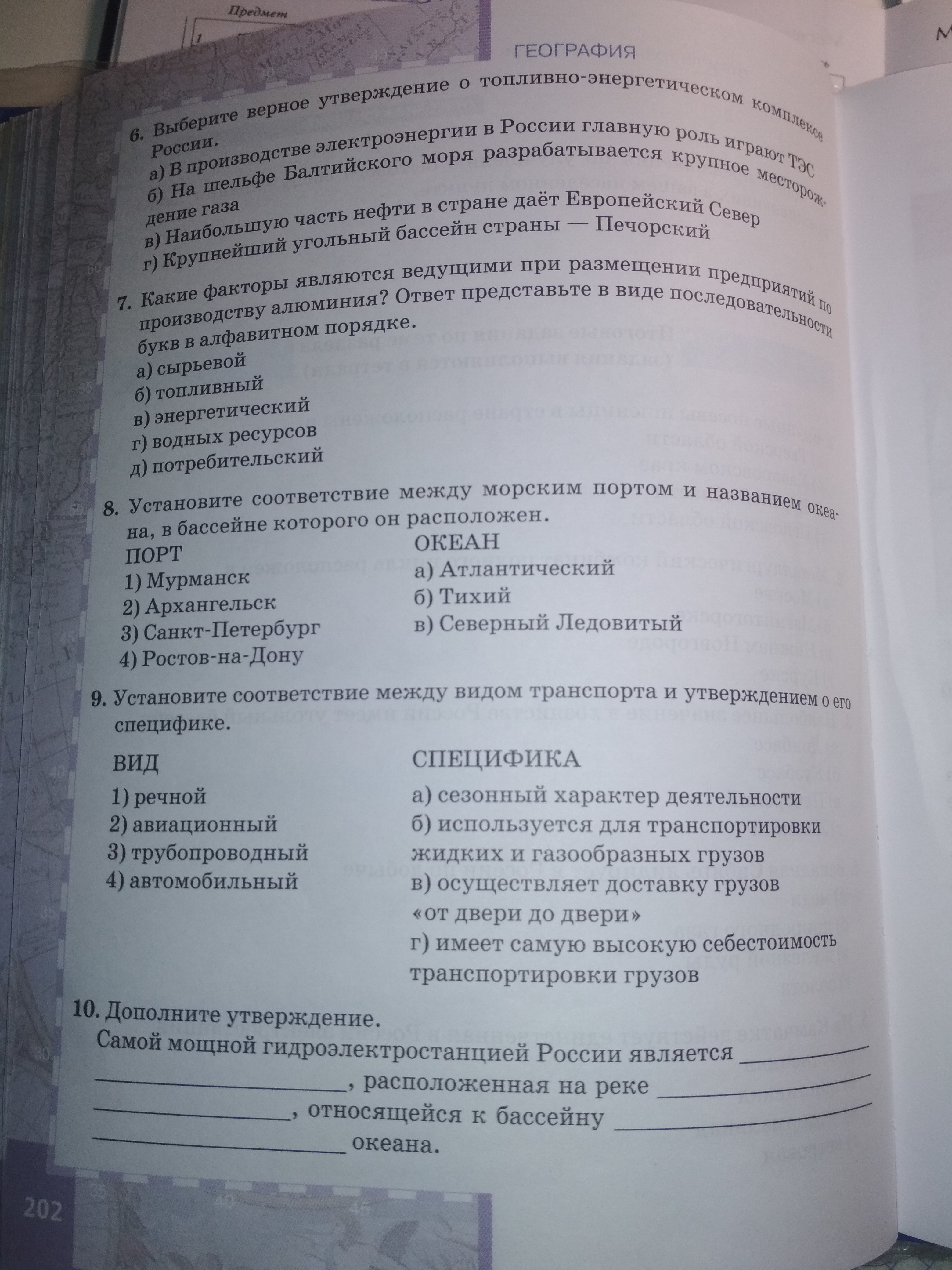 6. а 7. вгд 8. 1в 2в 3а 4а 9. 1а 2г 3б 4в 10. Саянская р.Енисей, Северного Ледовитого океана