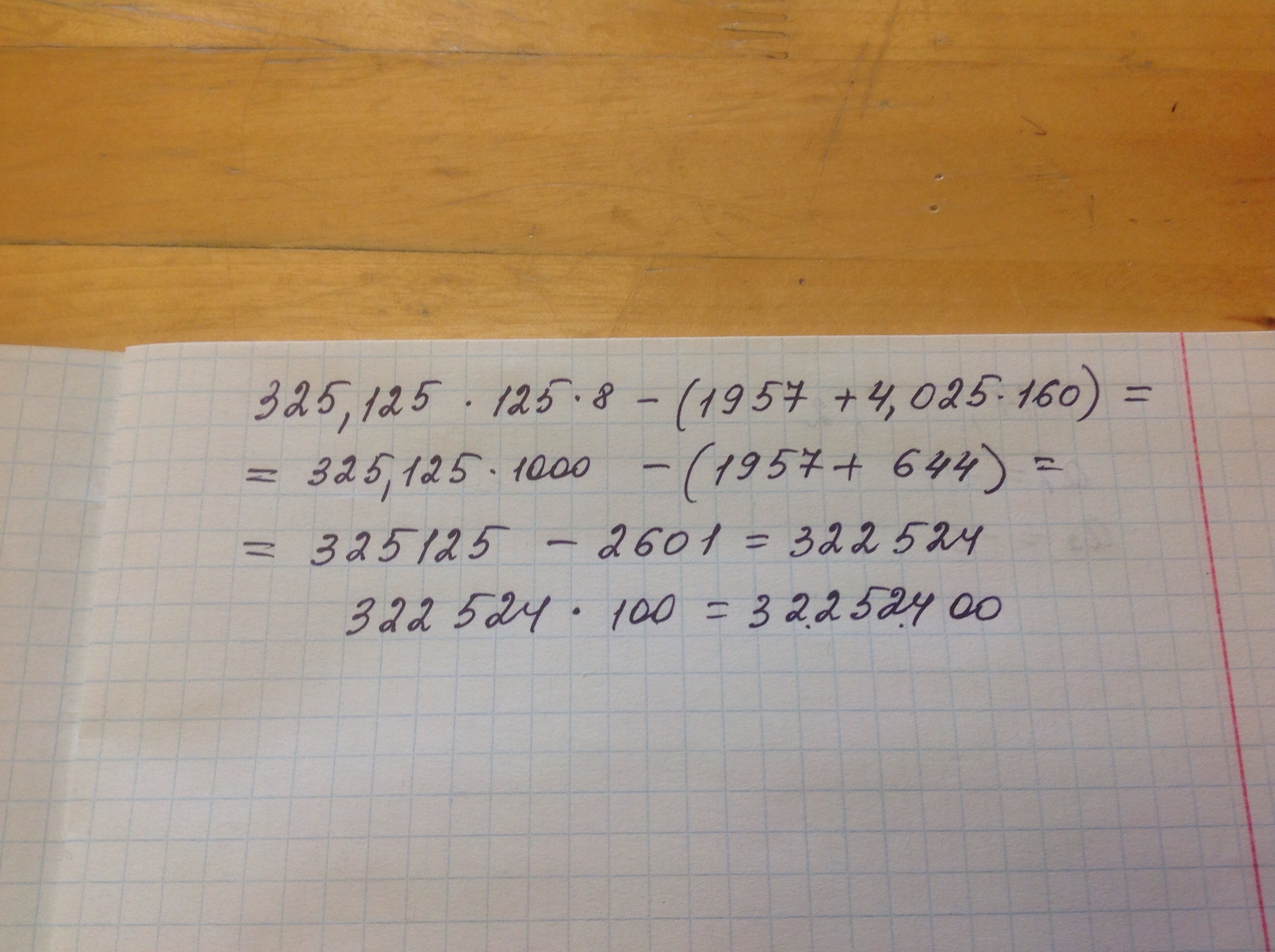 325,125 * 125 x 8 - (1957 +4,025x 160) в 100 раз