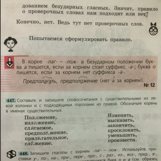 Изменить положение,, закончить изложение, уменшить слагаемое, высказать предположение, просклонять прилагательное, произвести сложение.