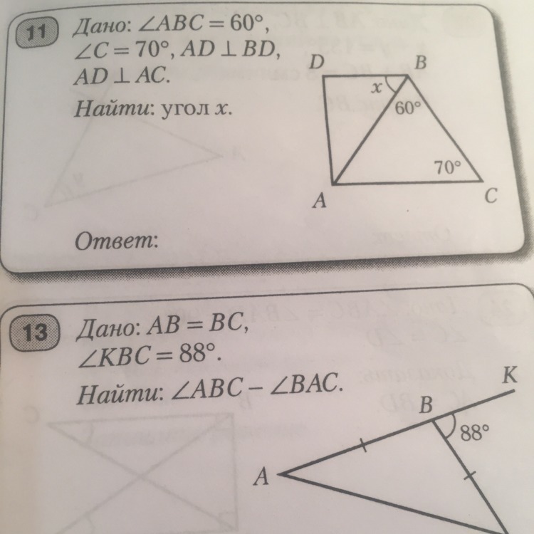 Затем, если по условию угол D прямой(тк AD перпендикулярно BD) найдем искомый угол через сумму всех углов треугольника.