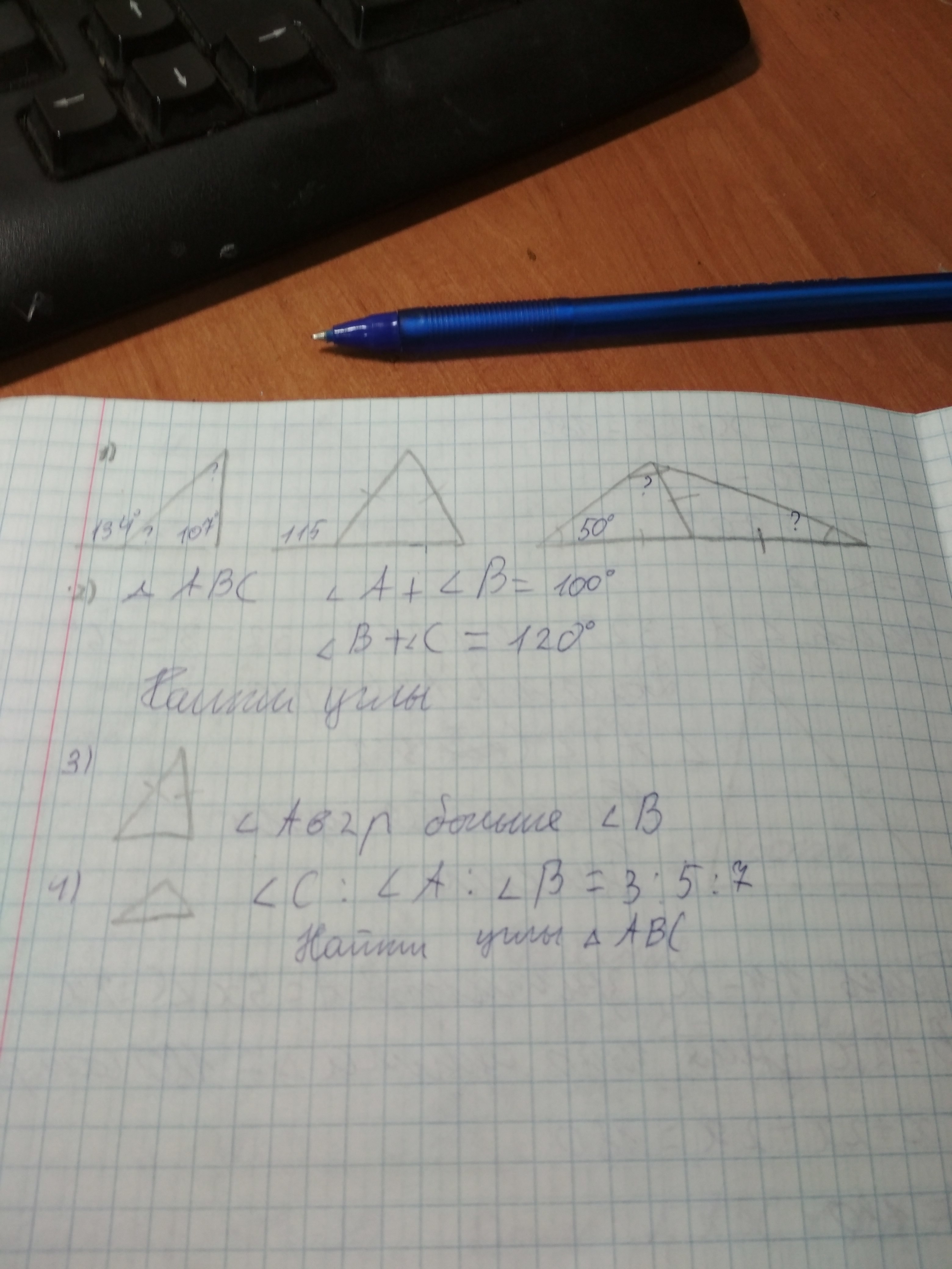 3) 72, 72 и 36 или 45, 45 и 90 ( зависит от обозначения букв треугольника)