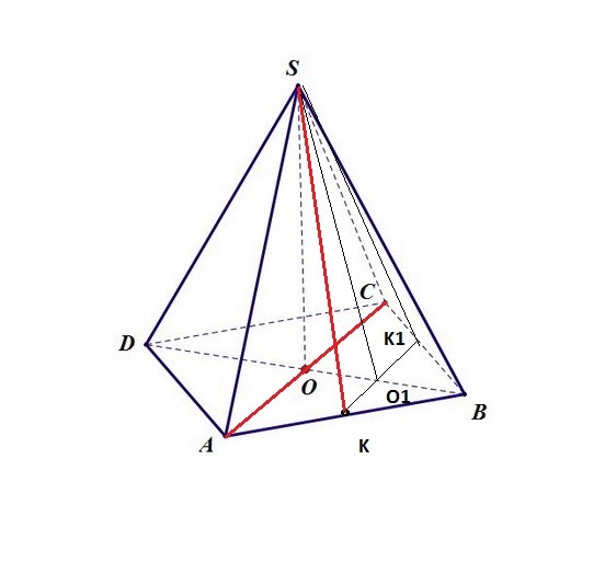 SK=SK1 из равнобедренного ΔАВS высота SK^2=a^2-(a/2)^3=3a^2/4; SK=a*√3/2