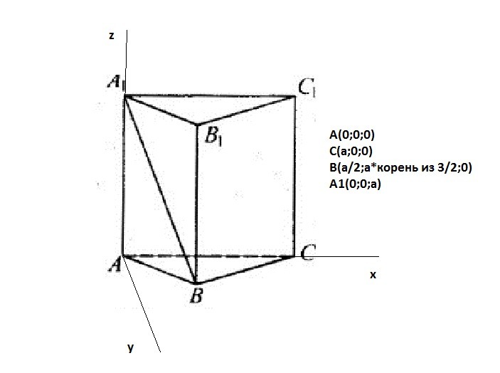 ВА1=(-a/2;-a*√3/2;a); AC=(a;0;0)