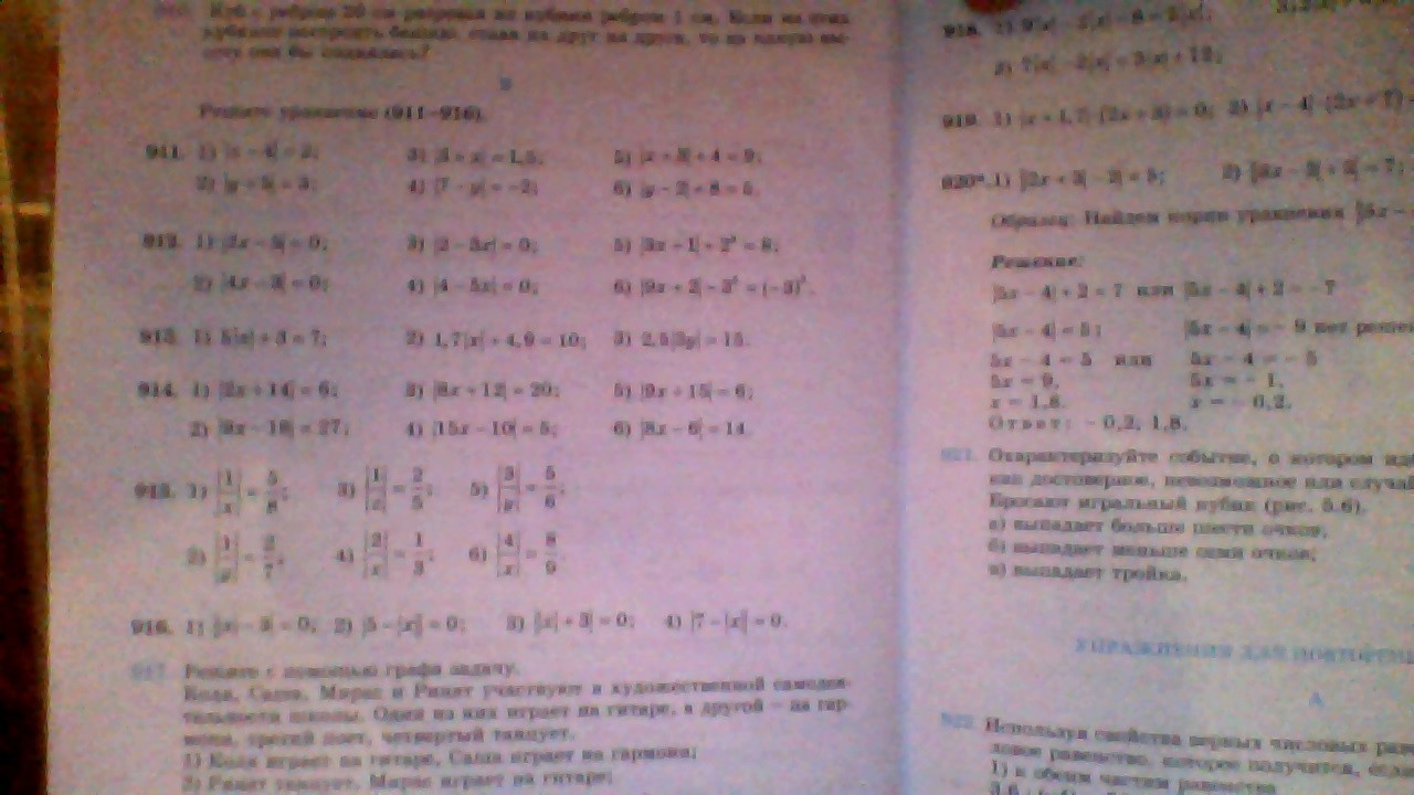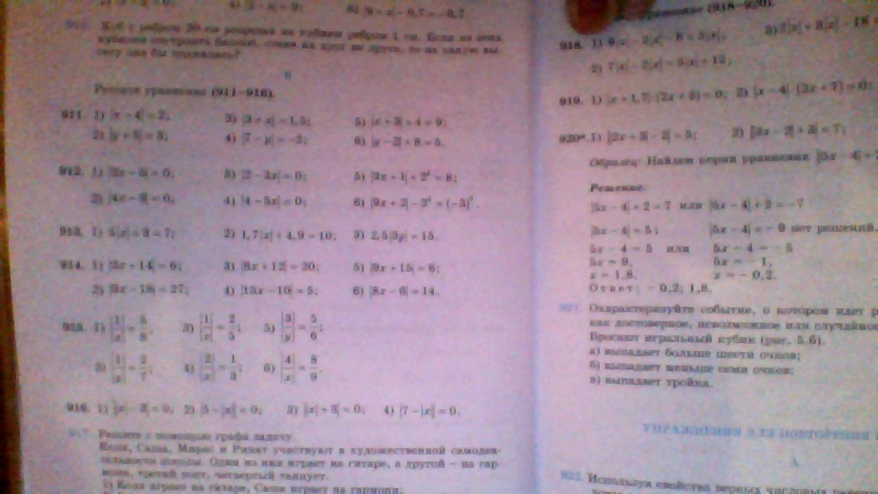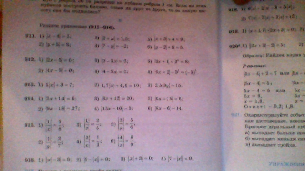 1)|x-4|=2 2)|3+x|=1,5 3)|x+3|+4=9 4)|y+5|=3 5)|7-y|=-2 6)|y-2|+8=5